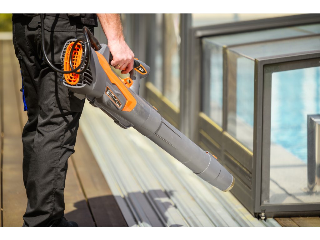 Leistungsstarker und leichter Akku-Laubbläser Cedrus BL210-P mit bürstenlosem Motor und Turbofunktion – ideal für das schnelle und effiziente Entfernen von Laub und Schmutz auf Wegen, Terrassen oder im Garten. Die 60 V Stromversorgung sorgt für eine hohe Leistung bei gleichzeitiger Mobilität und leisem Betrieb.