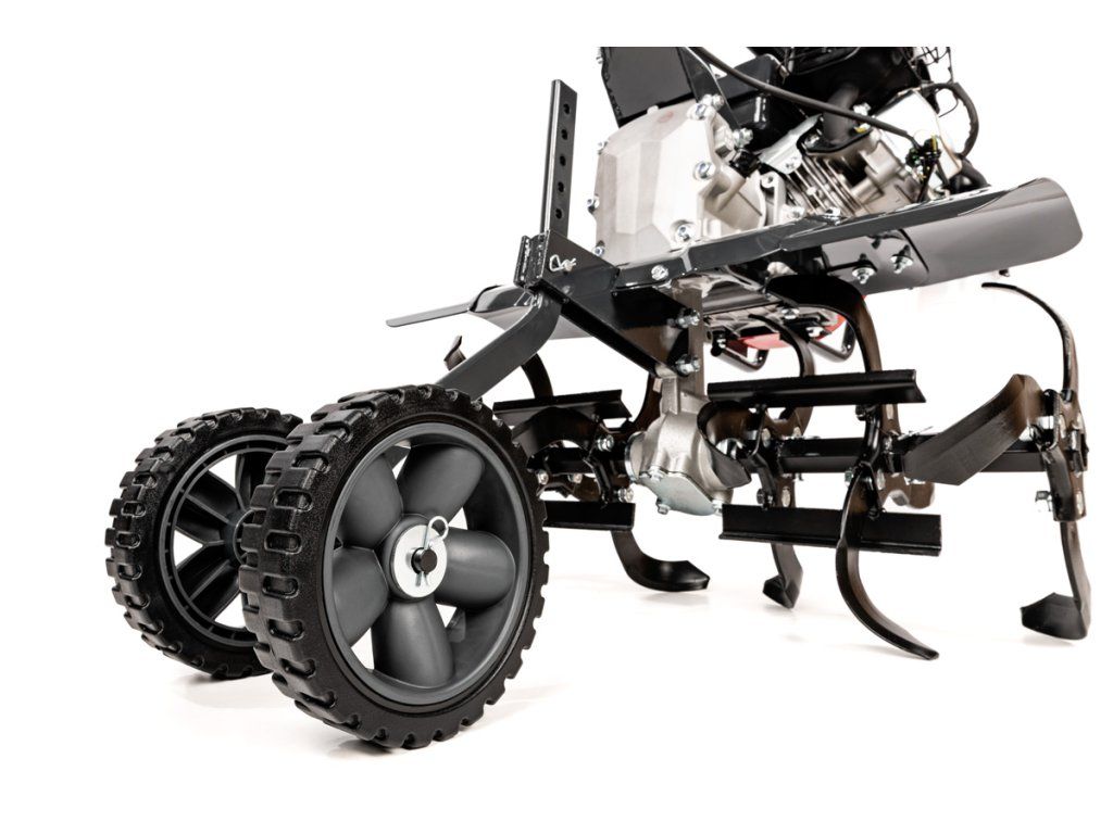 Dank der Transportrollen kann die Motorhacke auch außerhalb der Arbeitsfläche einfach bewegt werden.