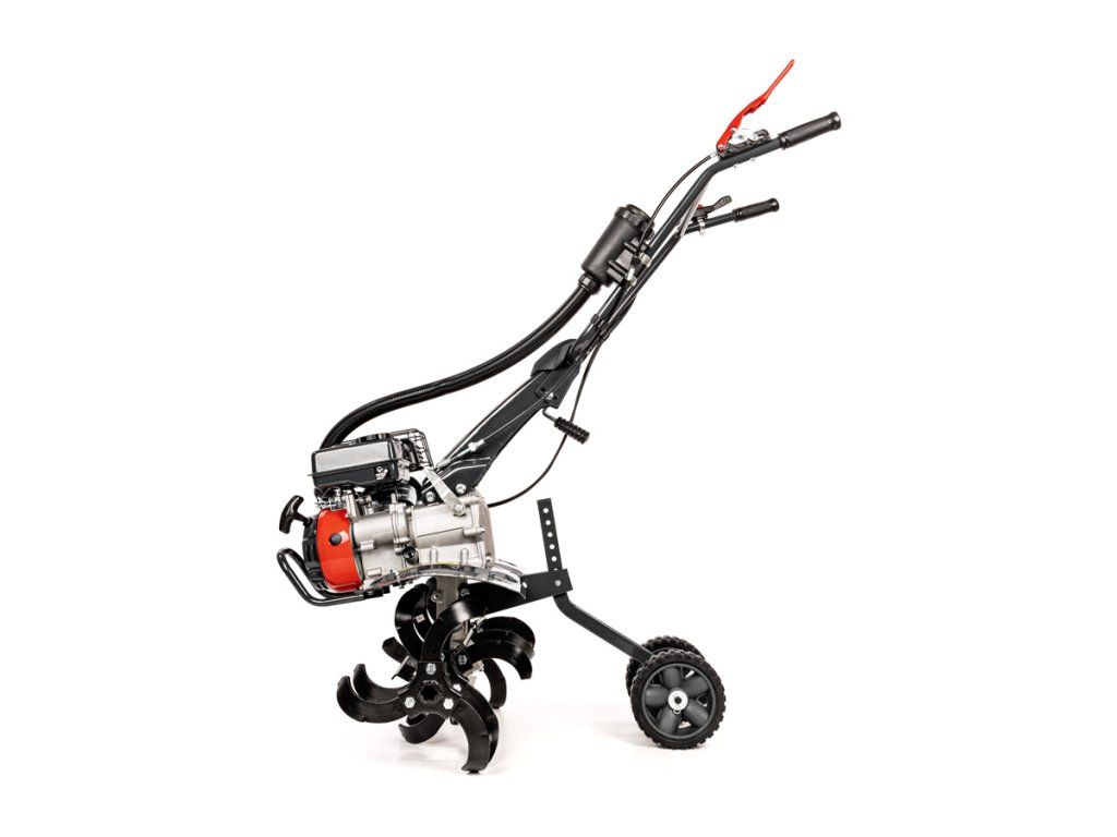 - Die Maschine ist mit einem zuverlässigen Motor ausgestattet, der ausreichend Leistung für übliche Gartenarbeiten bietet. Das Getriebe sorgt für eine gleichmäßige Kraftübertragung auf das Arbeitswerkzeug, wodurch ein stabiler Betrieb auch bei Arbeiten in anspruchsvollerem Boden ermöglicht wird.