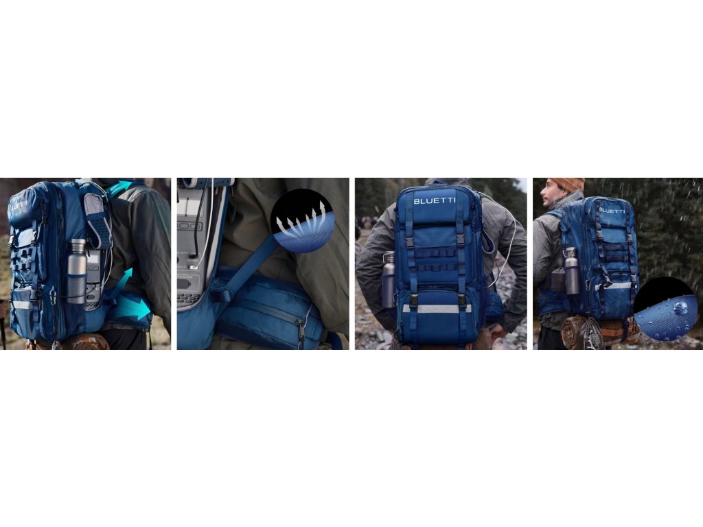 Bluepack 2 ist ein eigenständiger 60-Liter-Rucksack, der für den Transport und die Nutzung der tragbaren Batteriestation Bluepack 2 entwickelt wurde. Er ermöglicht einen komfortablen Transport, eine sichere Belüftung und einen einfachen Zugang zu den Ausgangsports beim Einsatz im Gelände.