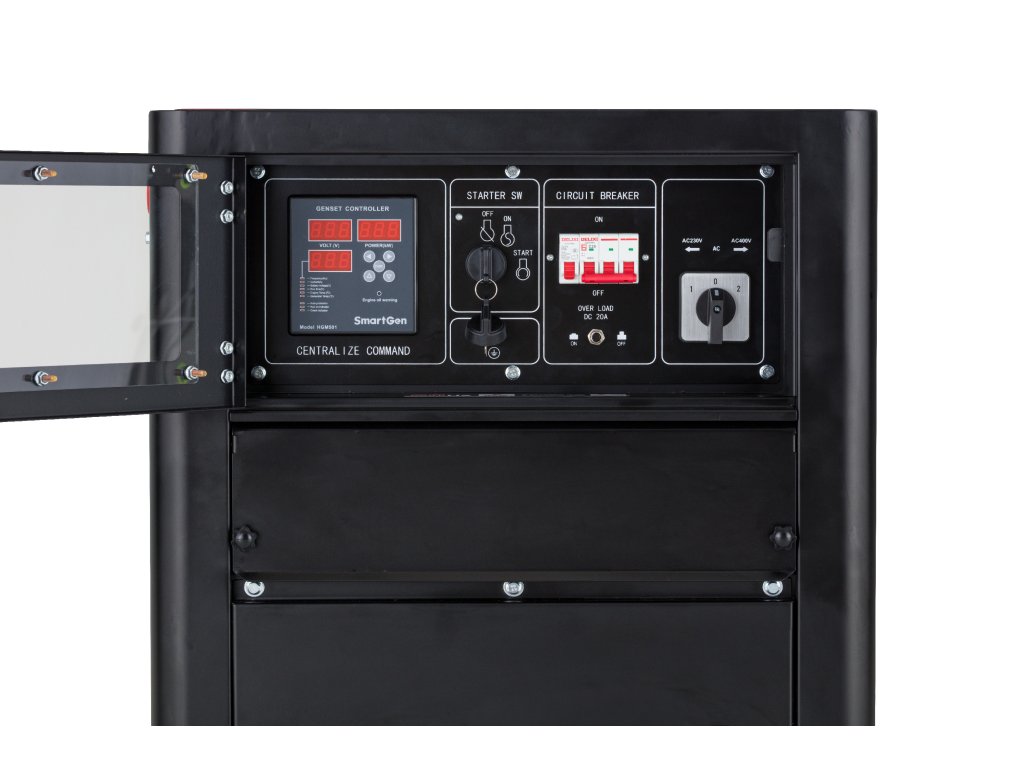 Professionelles schallgedämmtes Dieselaggregat für den einphasigen und dreiphasigen Betrieb (230 / 400 V), ausgelegt für den Dauerbetrieb, die Notstromversorgung von Objekten sowie anspruchsvolle professionelle Anwendungen. Es bietet eine Nennleistung von bis zu 11 kW (400 V), Motorvorwärmung, elektrischen Start und einen stabilen Ausgang dank AVR-Spannungsregelung.