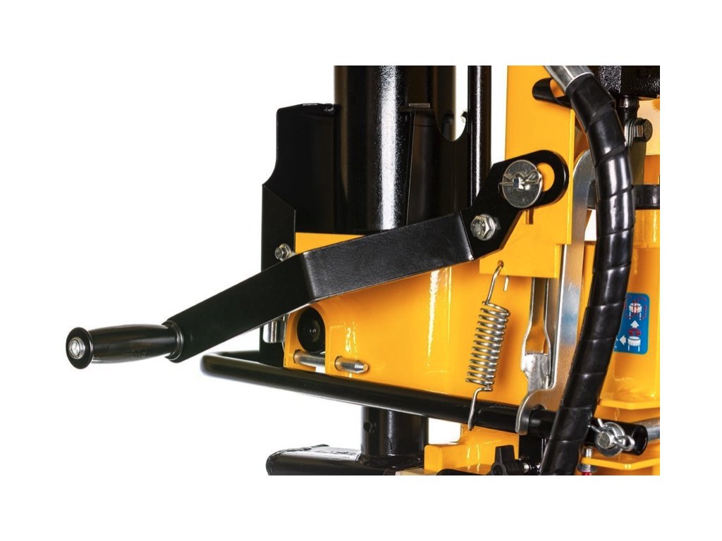 - Das Gerät verfügt über eine mechanische Fußstütze, die die Handhabung schwererer Stämme erleichtert und eine sichere Platzierung des Holzes unter dem Keil ermöglicht. Die Vorschubgeschwindigkeit des Hydraulikzylinders kann über Bedienelemente in zwei Geschwindigkeiten eingestellt werden: schneller Vorschub für Weichholz und langsamer für härteres oder größeres Holz. Hohe Leistung und qualitativ hochwertige Konstruktion sorgen für eine lange Lebensdauer und effizientes Arbeiten.