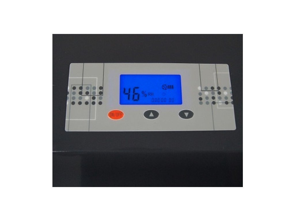- The dehumidifier has a digital control panel via which the desired humidity value can be programmed. In addition, operating hours and the current humidity are displayed.