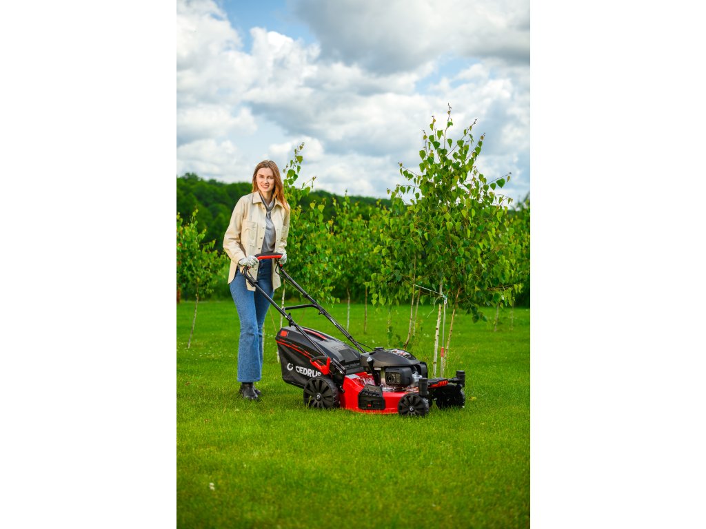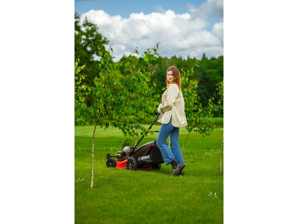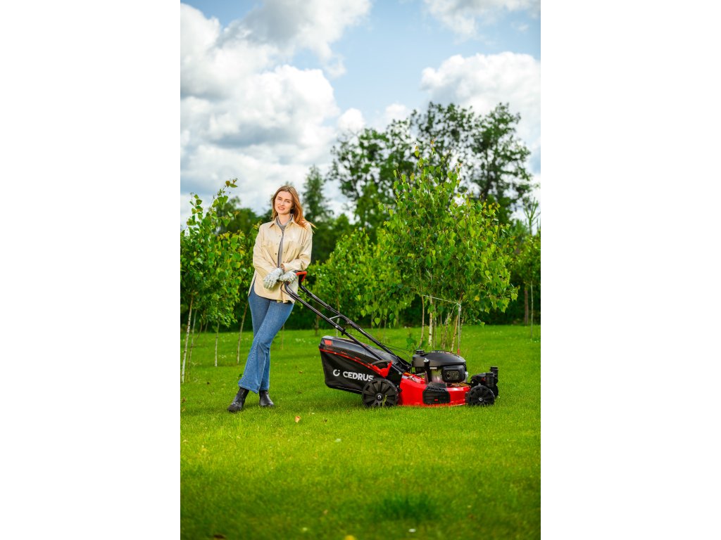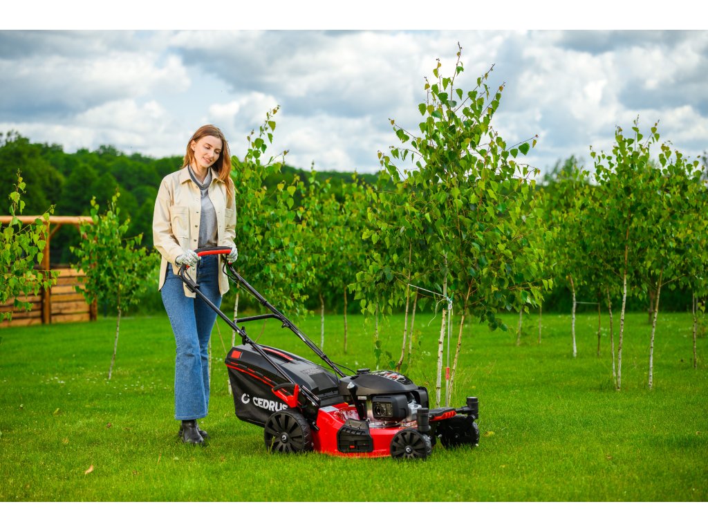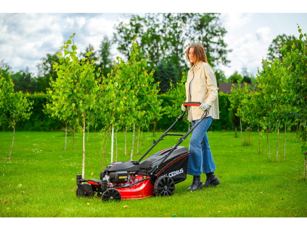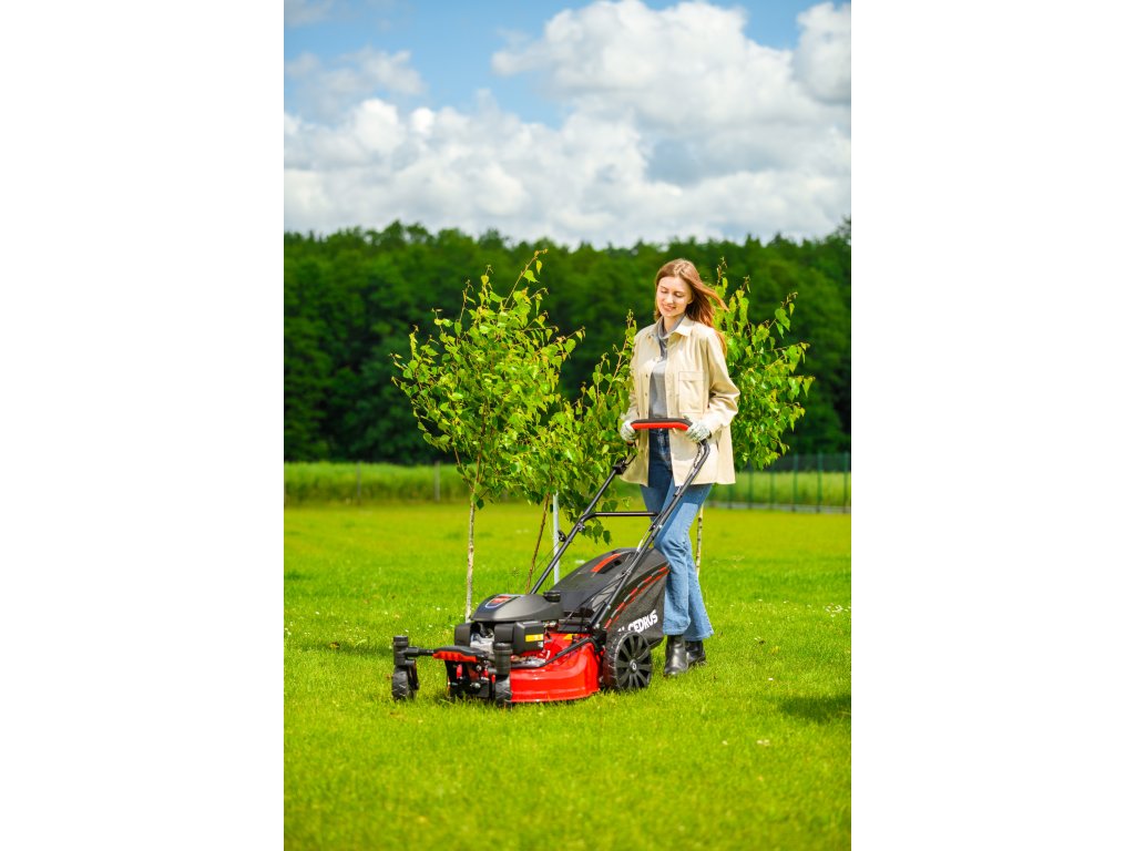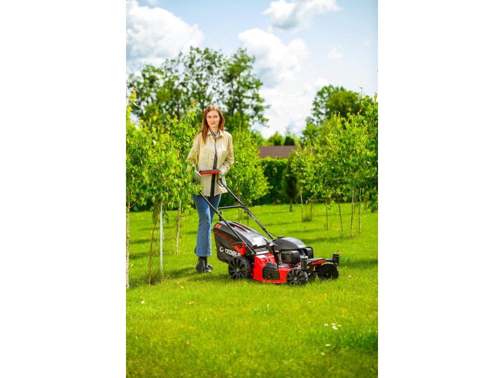 Benzin-Rasenmäher Hahn & Sohn Cedrus CEDKS51S-ZT mit Fahrwerk und schwenkbaren Vorderrädern