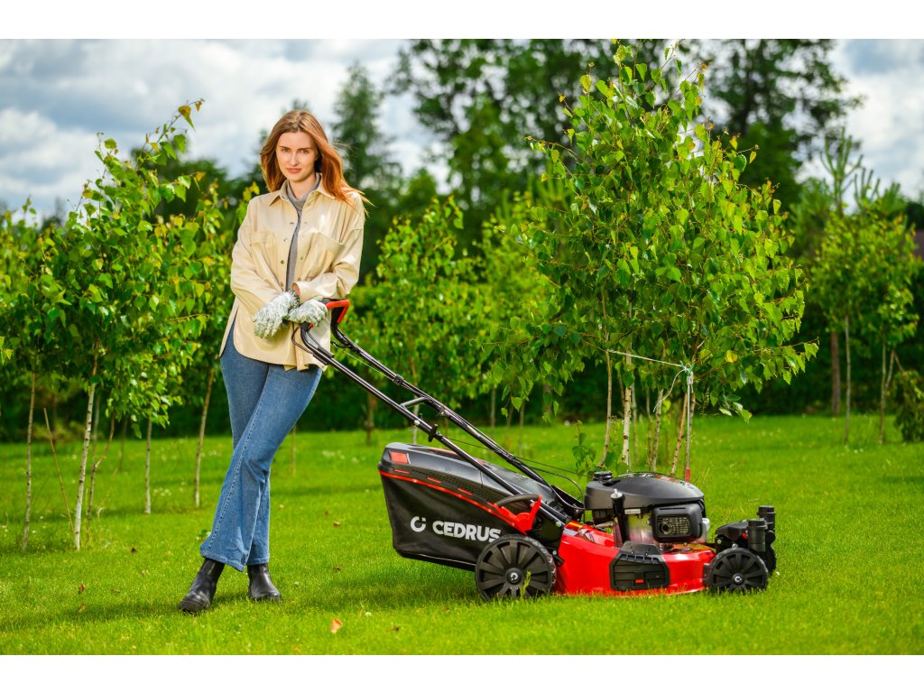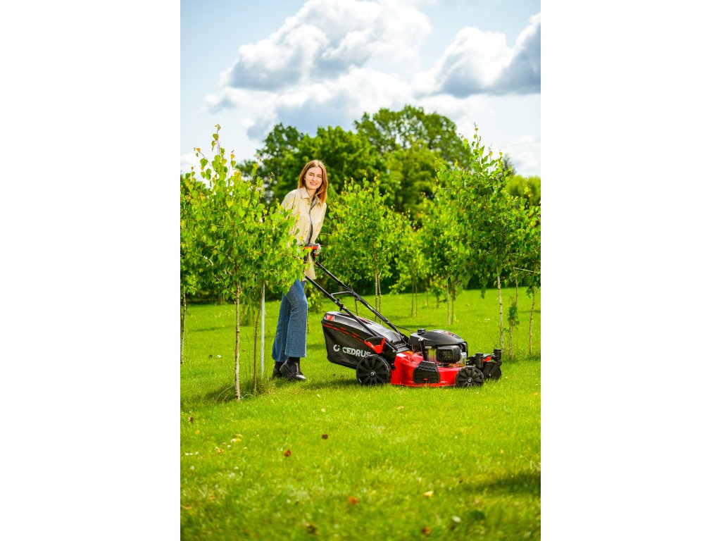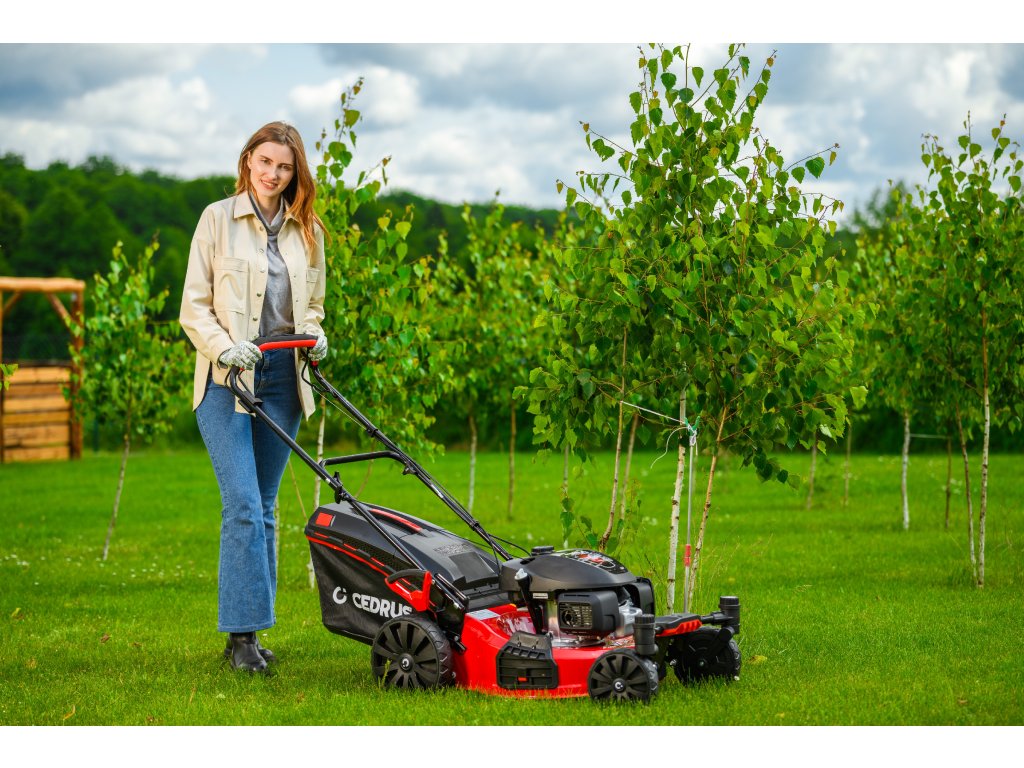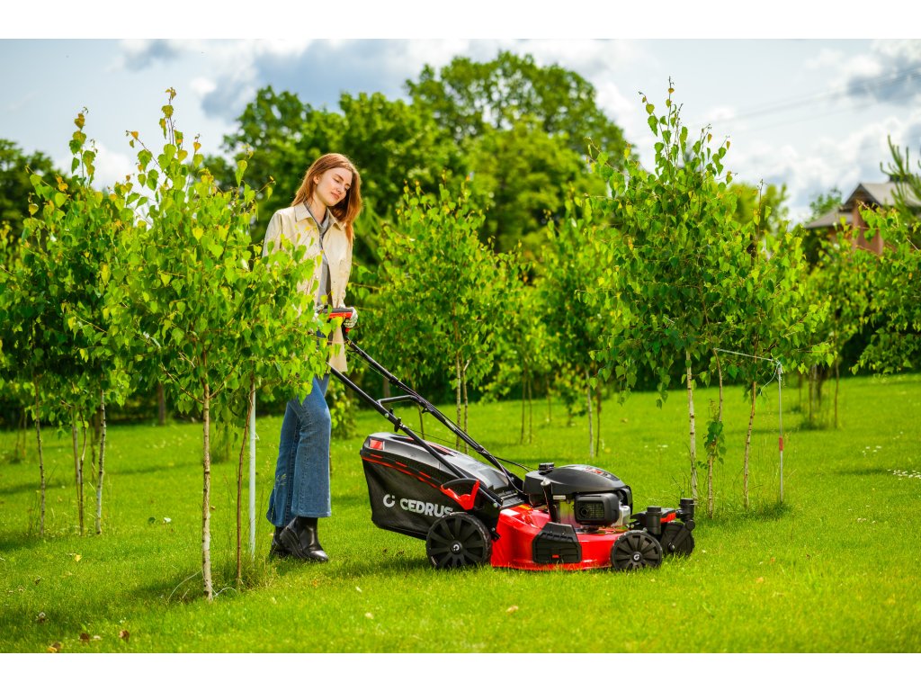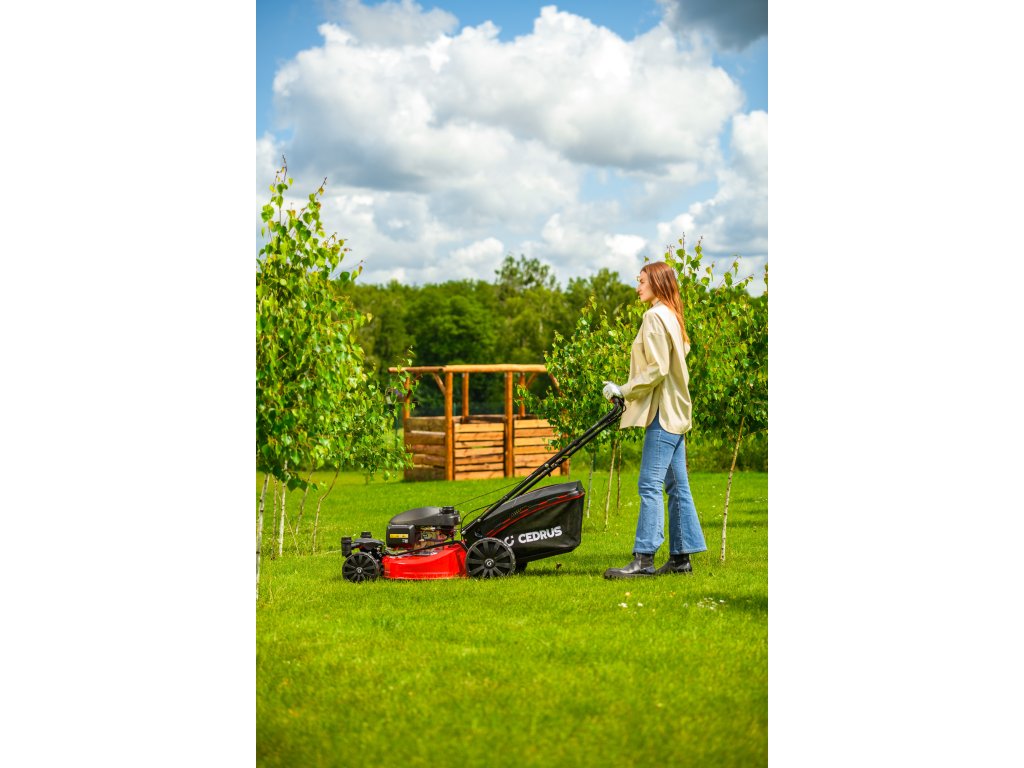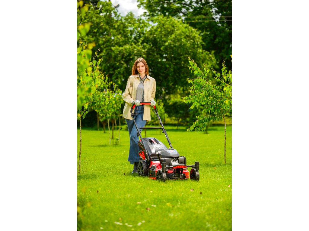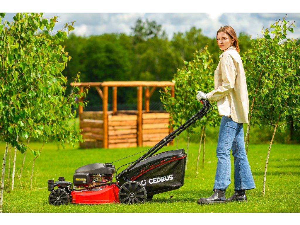 Benzin-Rasenmäher Hahn & Sohn Cedrus CEDKS51S-ZT mit Fahrwerk und schwenkbaren Vorderrädern