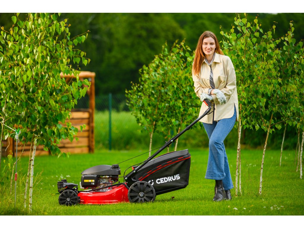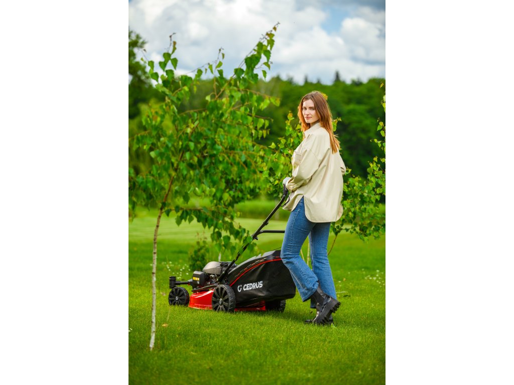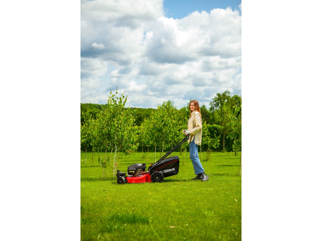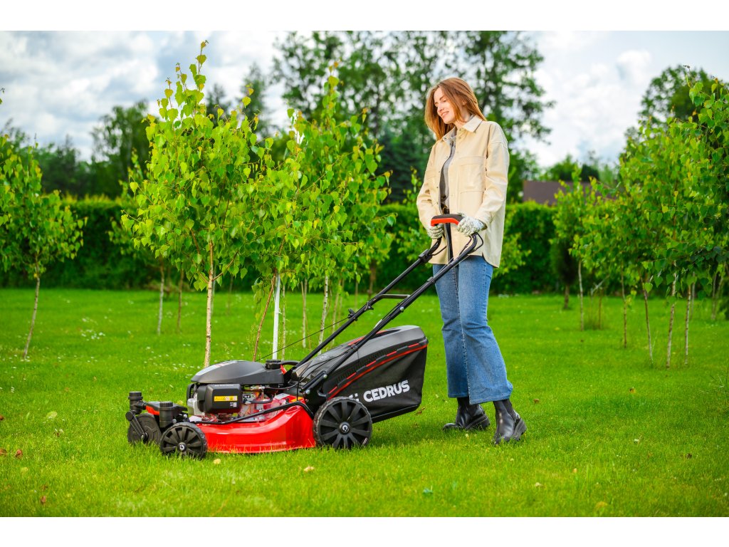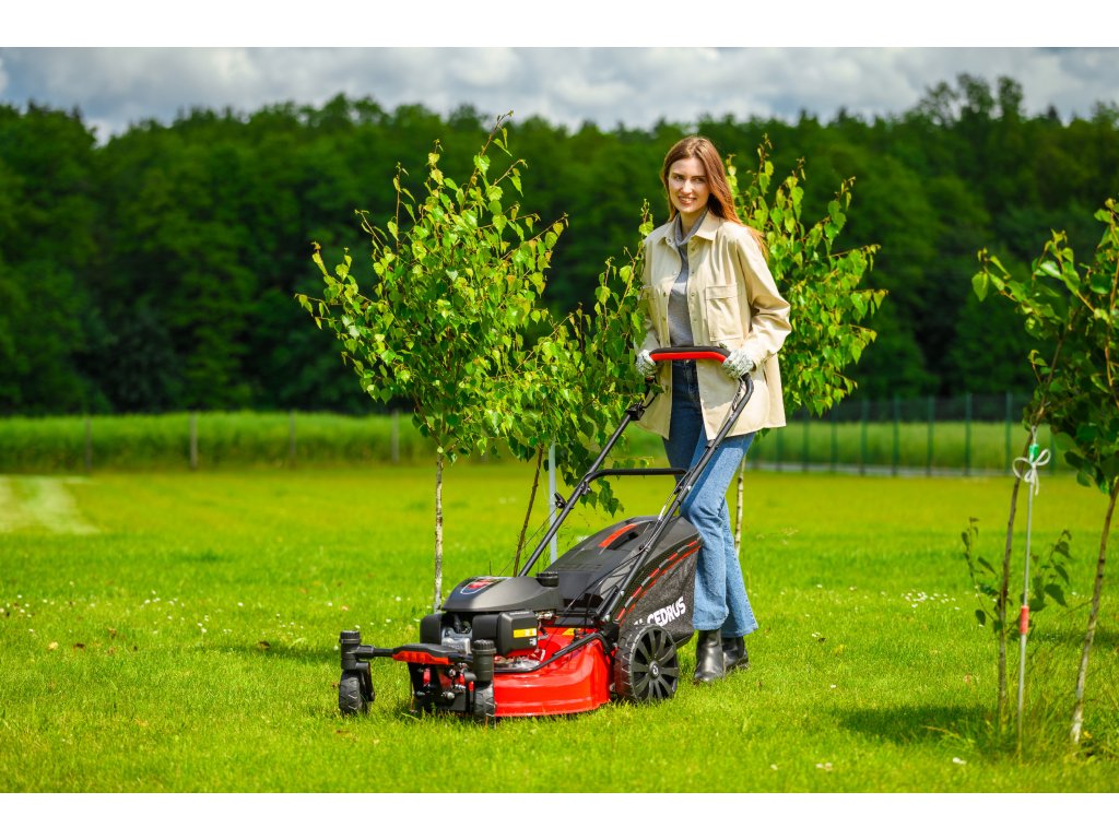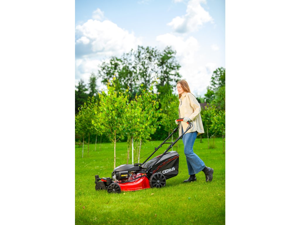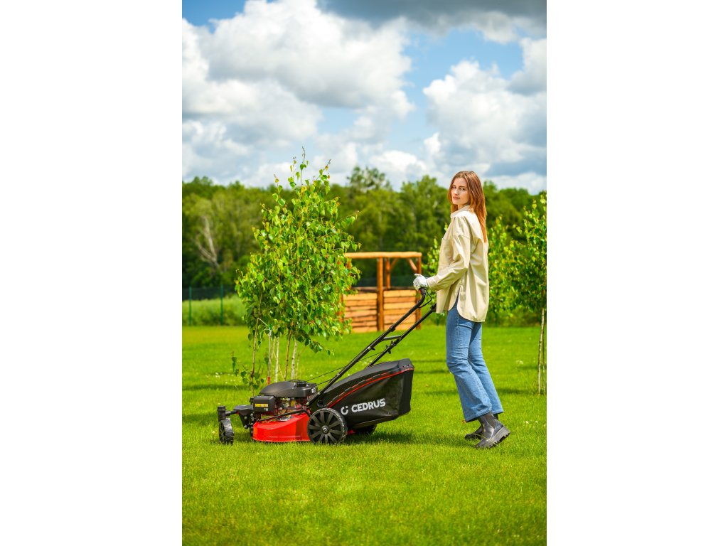 Benzin-Rasenmäher Hahn & Sohn Cedrus CEDKS51S-ZT mit Fahrwerk und schwenkbaren Vorderrädern