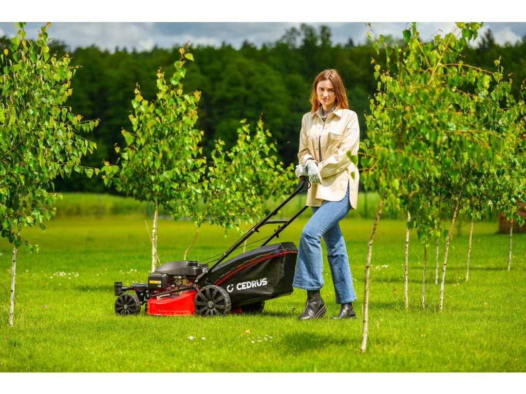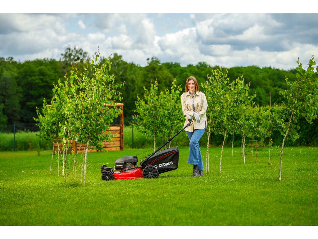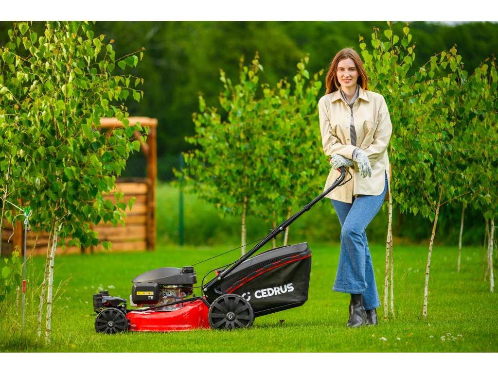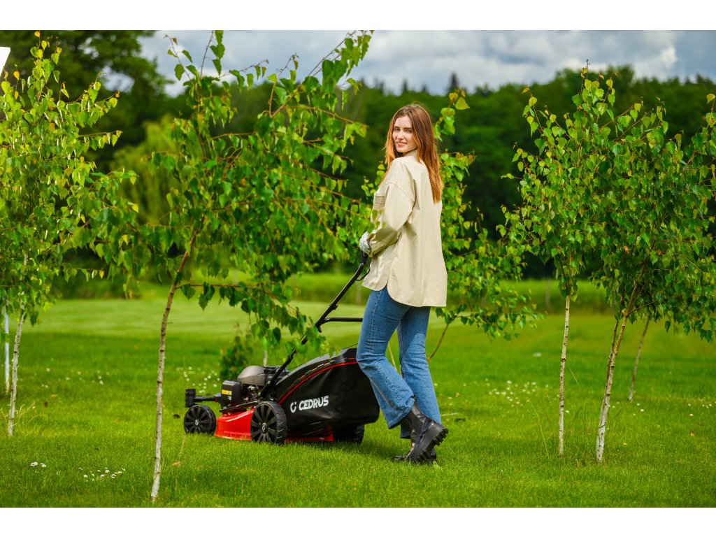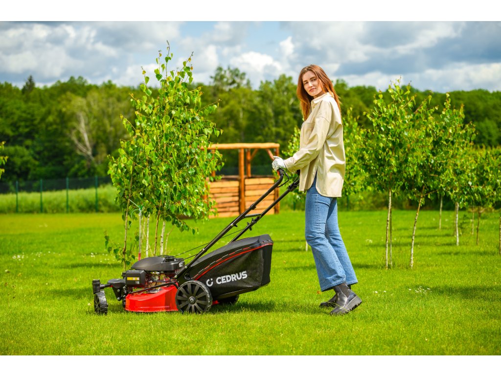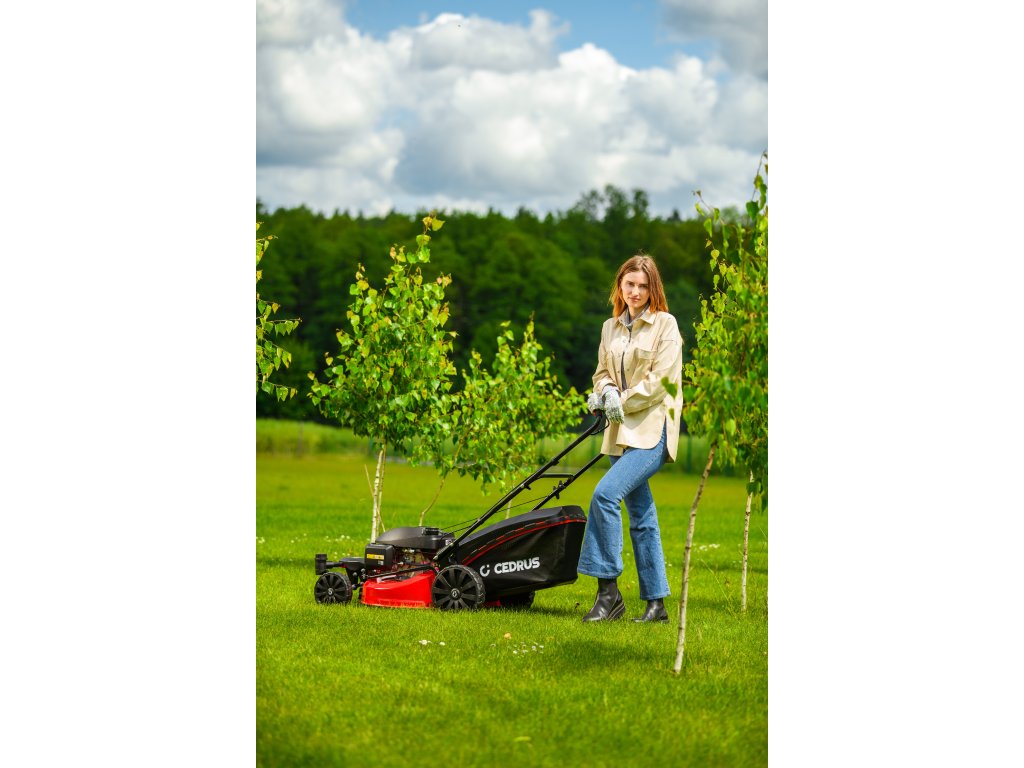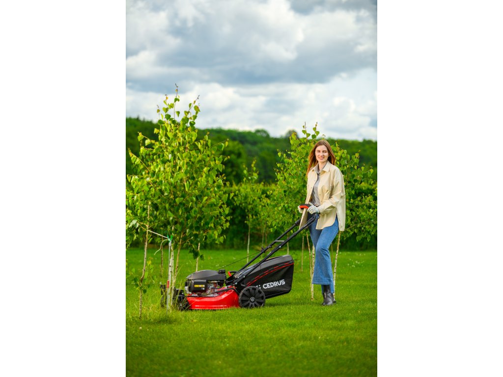 Benzin-Rasenmäher Hahn & Sohn Cedrus CEDKS51S-ZT mit Fahrwerk und schwenkbaren Vorderrädern
