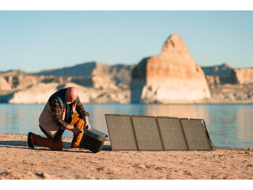 Hocheffizientes faltbares Solarpanel mit bifazialer Technologie zur maximalen Nutzung der Sonnenenergie. EcoFlow 220W der 2. Generation vereint Leistung, Tragbarkeit und Widerstandsfähigkeit – ideal für Reisen, Camping und Arbeiten abseits des Netzes.