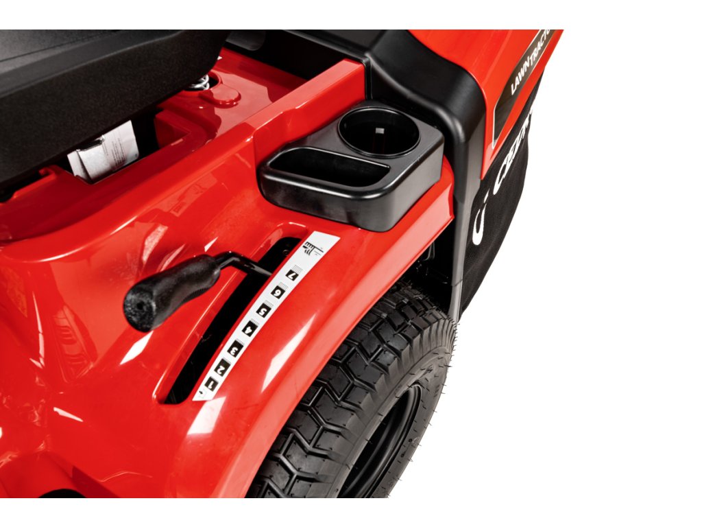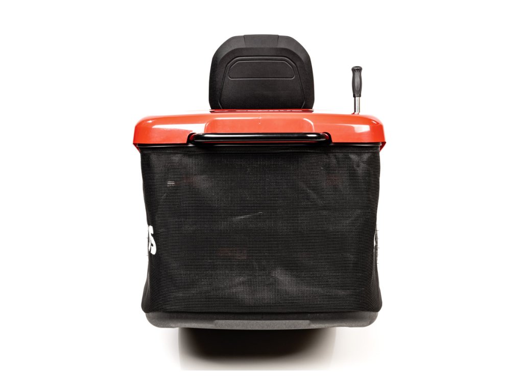 - LED-Beleuchtung ermöglicht das Arbeiten bei reduzierten Sichtverhältnissen. Der Korbsensor warnt vor einer vollen Entleerung, wodurch Unterbrechungen beim Mähen minimiert werden. Der Traktor ist außerdem mit einem hinteren Anhängerdeck ausgestattet, um einen Anhänger anzuschließen.