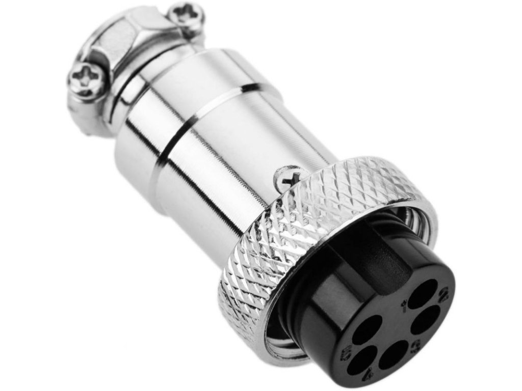 Der robuste 5-polige GX20-Steckverbinder (Buchse) mit Metallgehäuse ist für eine zuverlässige Verbindung in Industrie-, Mess-, Kommunikations- und Automatisierungssystemen ausgelegt. Geeignet für Spannungen bis 250 V und einen Strom von 7 A.