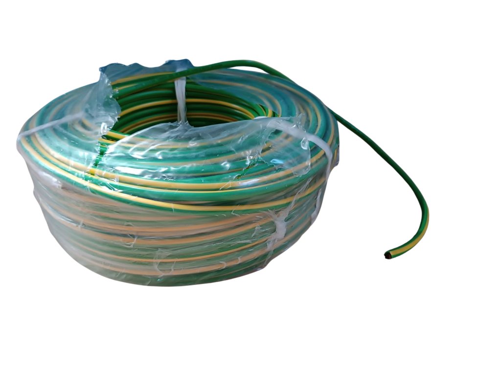 Erdungskabel H07V-K CYA mit einem Querschnitt von 16 mm². Hergestellt aus hochwertigem Kupfer, mit gelb-grüner Isolierung. Der Preis gilt für 1 m, die gesamte Spule enthält 100 m Kabel.