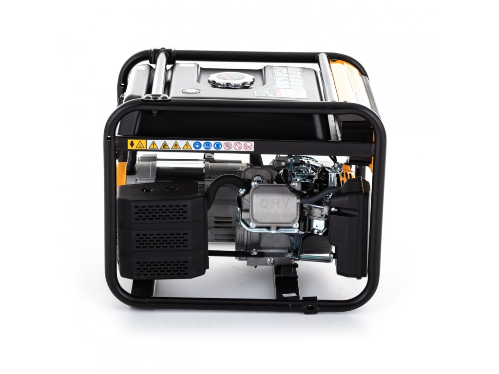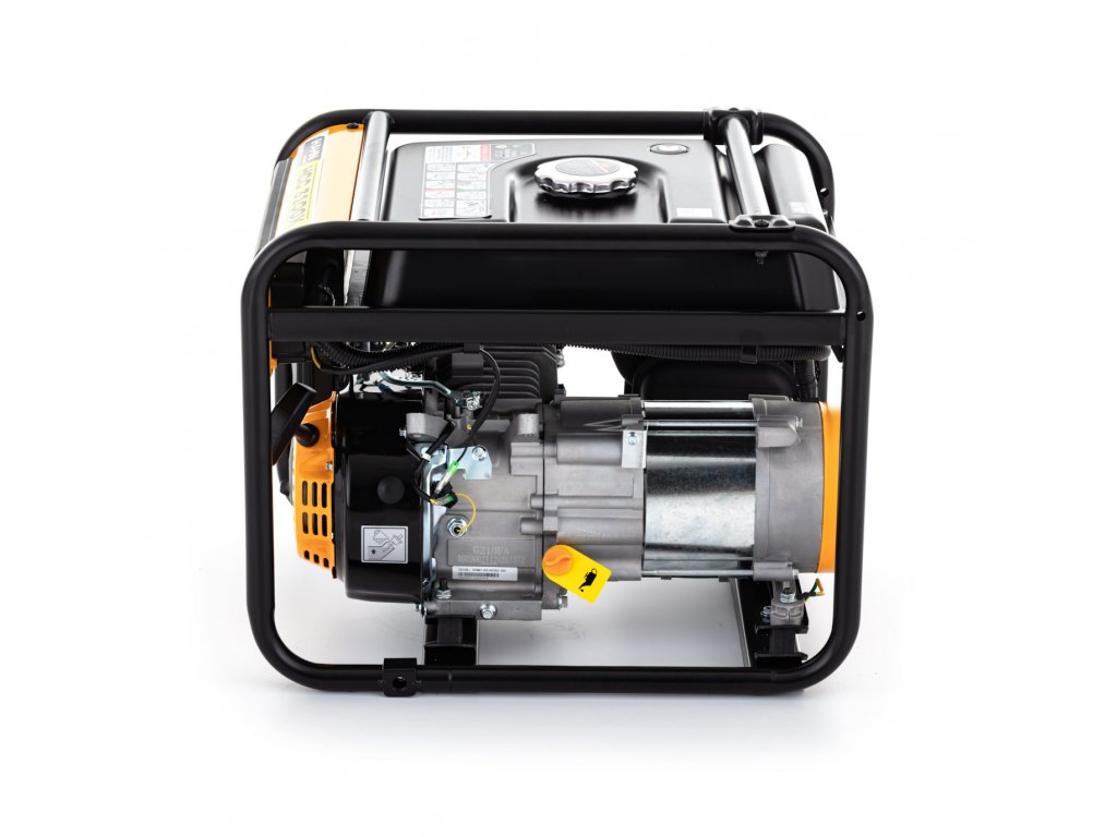 Der luftgekühlte Viertakter mit einem Hubraum von 212cm³ hat einen großen 9l-Tank, der das lange und störungsfreie Betreiben von bis zu 6h erlaubt. Der Generator wird händisch gestartet und liefert 230V. Die so entstehende Leistung von 3,3 kW (Höchstleistung) und 3 kW (Nennleistung) macht den Generator zu einem leistungsstarken Begleiter.