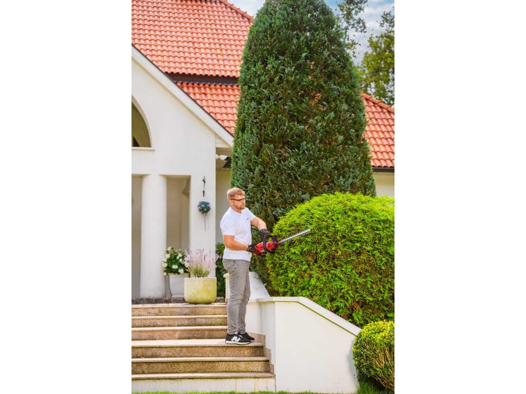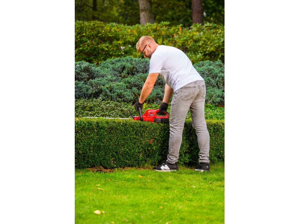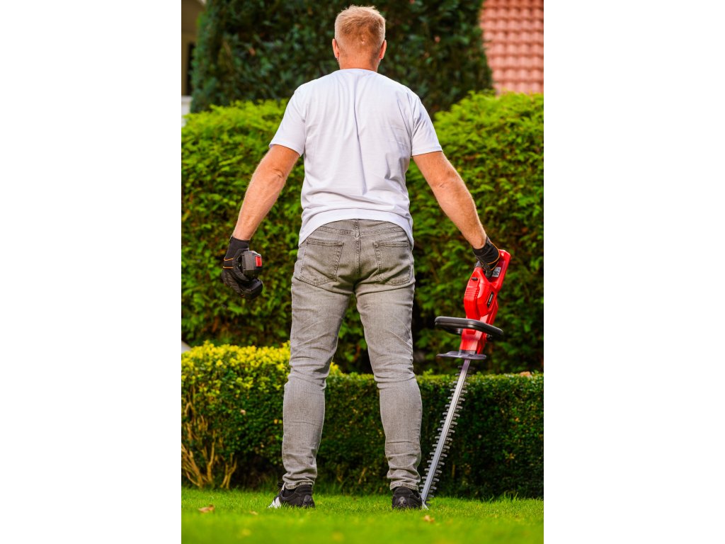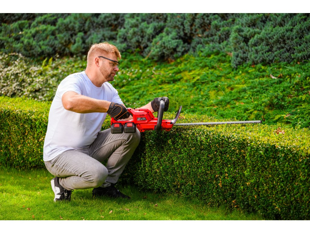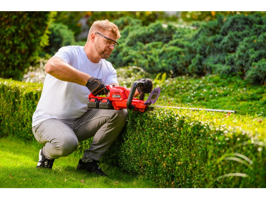 Leistungsstarke Akku-Hecken-schere Cedrus CEDHT520LIX2 mit zwei 20V Li-Ion-Akkus und einer Klingenlänge von 520 mm. Dank des ergonomischen Designs und des drehbaren Griffs ermöglichen sie eine einfache und komfortable Handhabung.