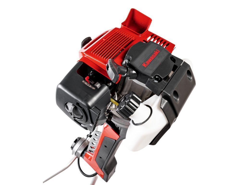 - Das Herzstück der Maschine ist ein 2-Takt-Motor Kawasaki TJ53E mit einer Leistung von bis zu 2 kW (ca. 2,7 HP), der genügend Kraft auch für dichteren Bewuchs und anspruchsvolle Bedingungen bietet. Damit bewältigen Sie nicht nur normales Gras, sondern auch stärker bewachsene Flächen.