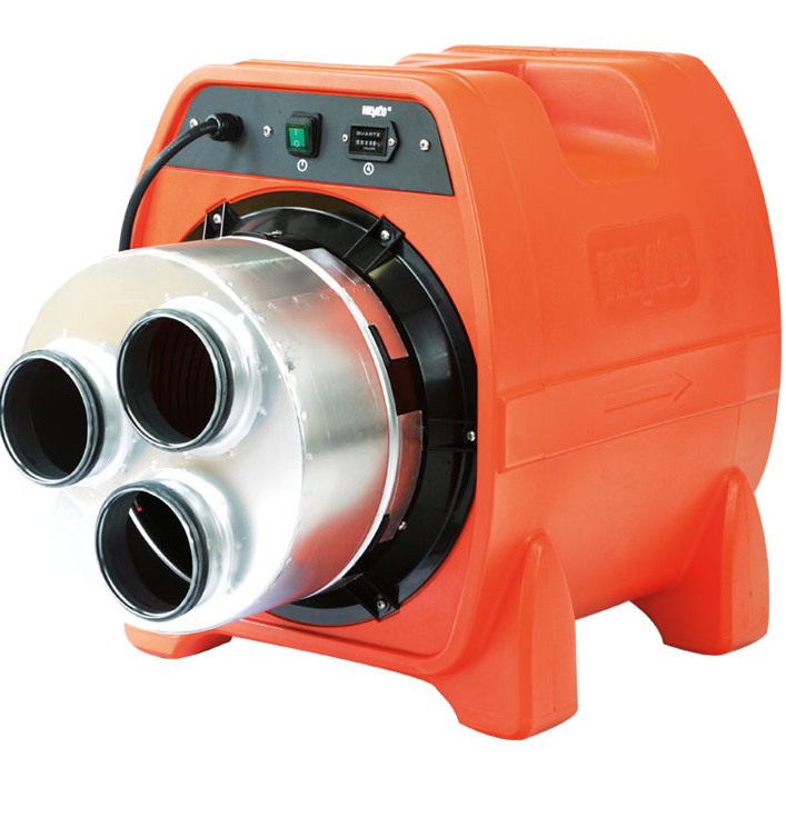 Am PowerVent 3000 lassen sich schnell und einfach Luftschläuche anschließen, besonders gezielt mit dem praktischen 3-fach Verteiler. Somit kann frische Luft auch in die entferntesten Räume transportiert und verbrauchte Luft von dort abgesaugt werden.