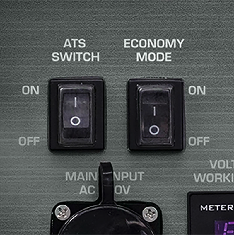 Der MAINS INPUT 230V Anschluss wird überwacht sobald man den Drehschalter auf RUN stellt und den ATS SWITCH auf ON schaltet. Soll die 230V-Spannung am MAINS INPUT ausfallen, startet der ATS-Kontroller den Generator und schaltet seine Ausgangssteckdose auf das Inverter-Modul um.