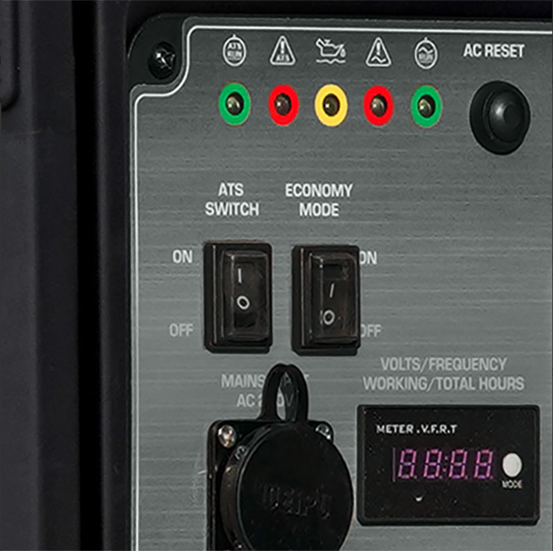 Der Generator ist mit einer internen ATS-Einheit ausgestattet. Die ATS-Einheit überwacht die Spannung der Hauptstromquelle, startet den Generator bei einem Stromausfall und schaltet die zu versorgende Last auf den Generator um. Die ATS schaltet beim Wiederkehren der Hauptstromversorgung auf diese zurück und stoppt den Generator.