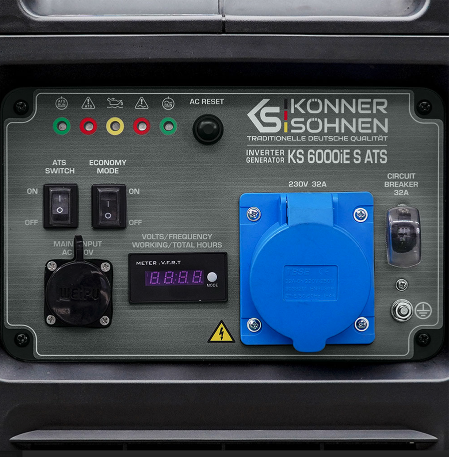 Der KS 6000iES ATS hat eine CEE 230V 32A Steckdose, die je nach Version des Generators unterschiedlich geschaltet wird.