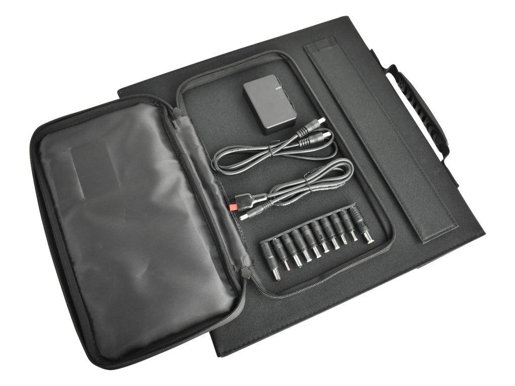 Das Solarladegerät ist einfach und sicher zu bedienen, umweltfreundlich und energieeffizient. Das portable Solarladegerät wird mit einem Ladeadapter mit einer standardmäßigen USB-Buchse und einem USB Quick Charge 3.0-Anschluss geliefert. Eine LED-Signalleuchte am Ladeadapter zeigt an, dass es genügend Sonnenenergie zum Laden Ihrer Geräte gibt. Das Produkt ist dank der mitgelieferten unterschiedlich großen Stecker mit den meisten tragbaren Powerstationen kompatibel. Die vom Solarpanel in den Strom umgewandelte Sonnenenergie kann in der Batterie einer tragbaren Powerstation gespeichert und in der Nacht verwendet werden.