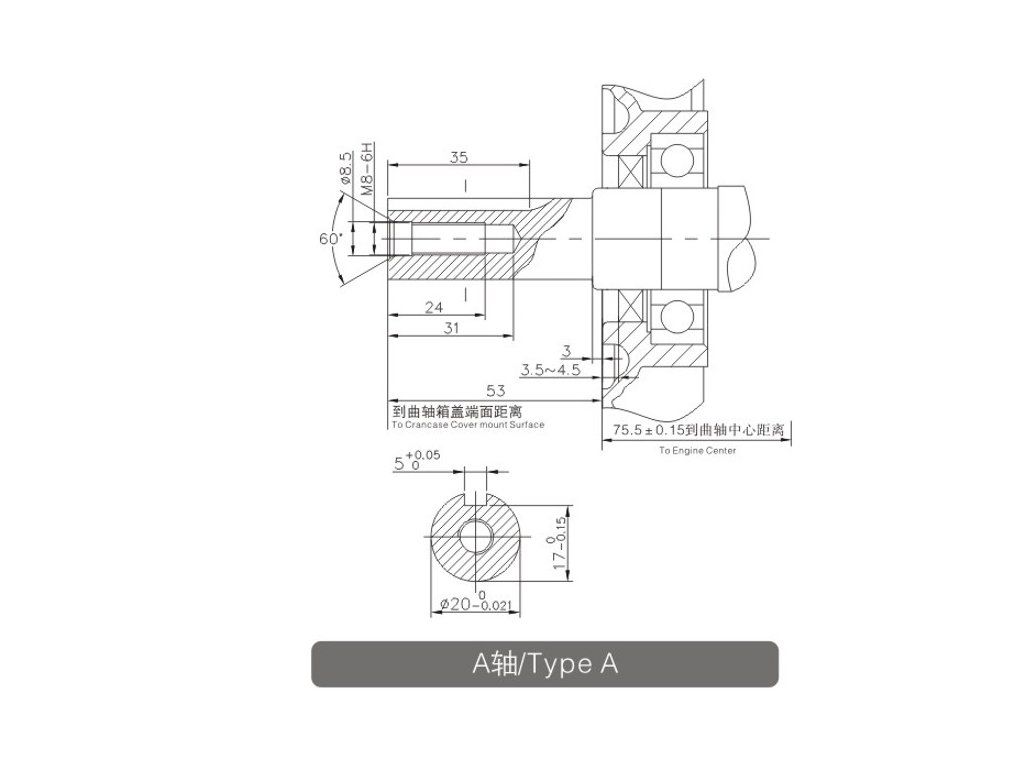 Motor Loncin G200F-A-S mit horizontaler Welle 20 mm / 53 mm