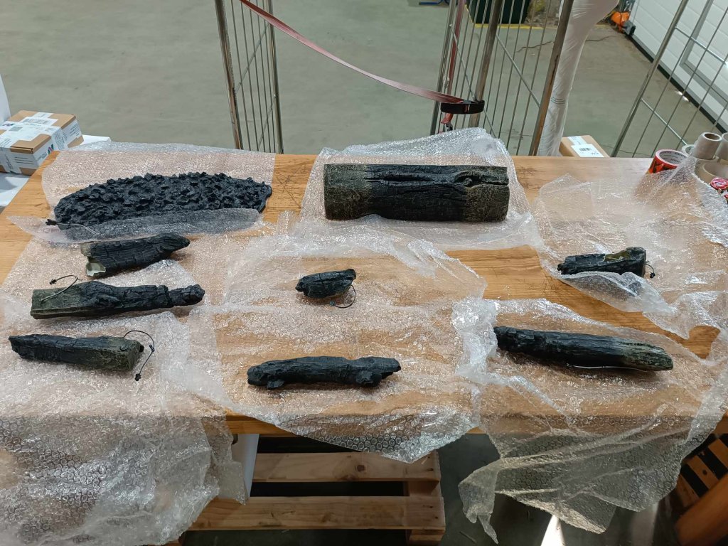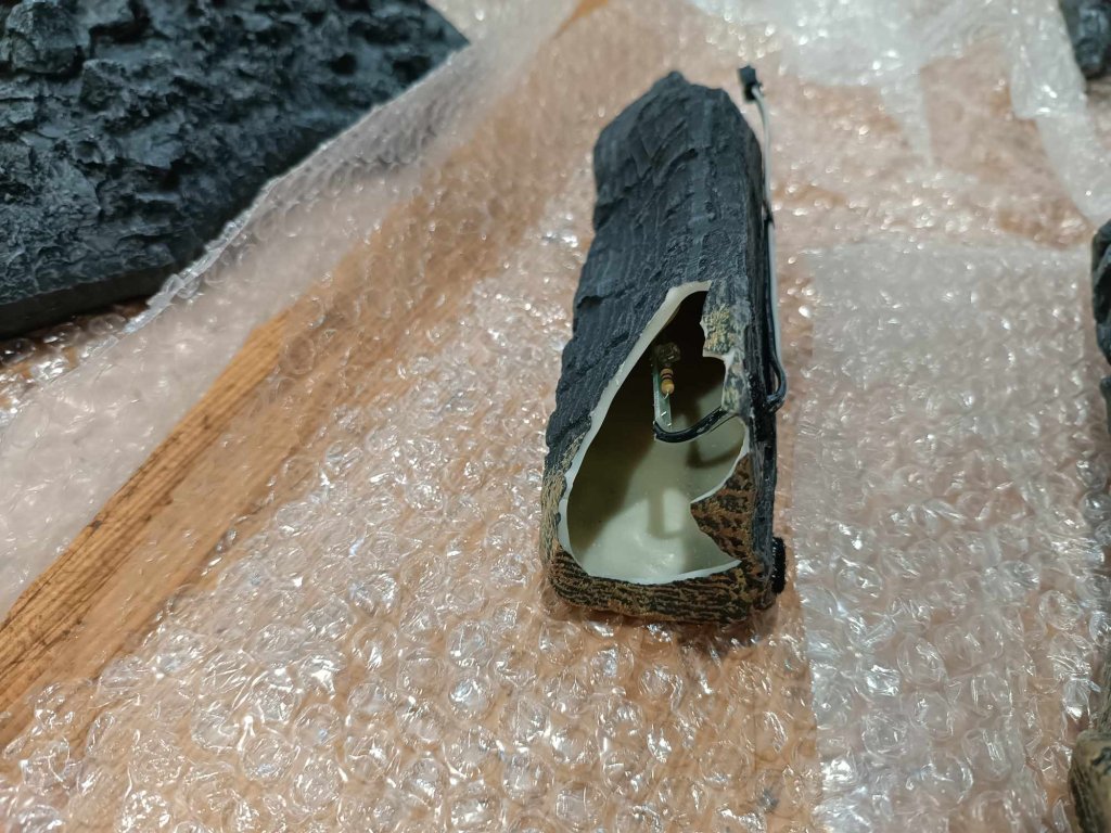 - Glühende LED-Holzscheite mit losen Holzscheiten für eine individuelle Dekoration