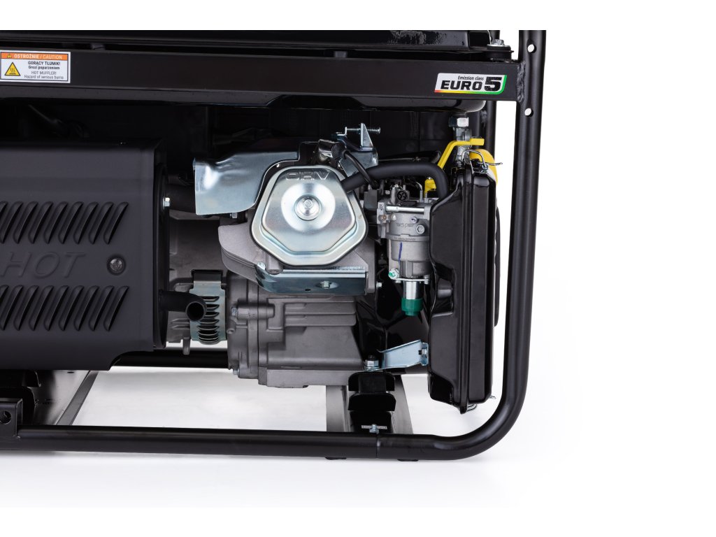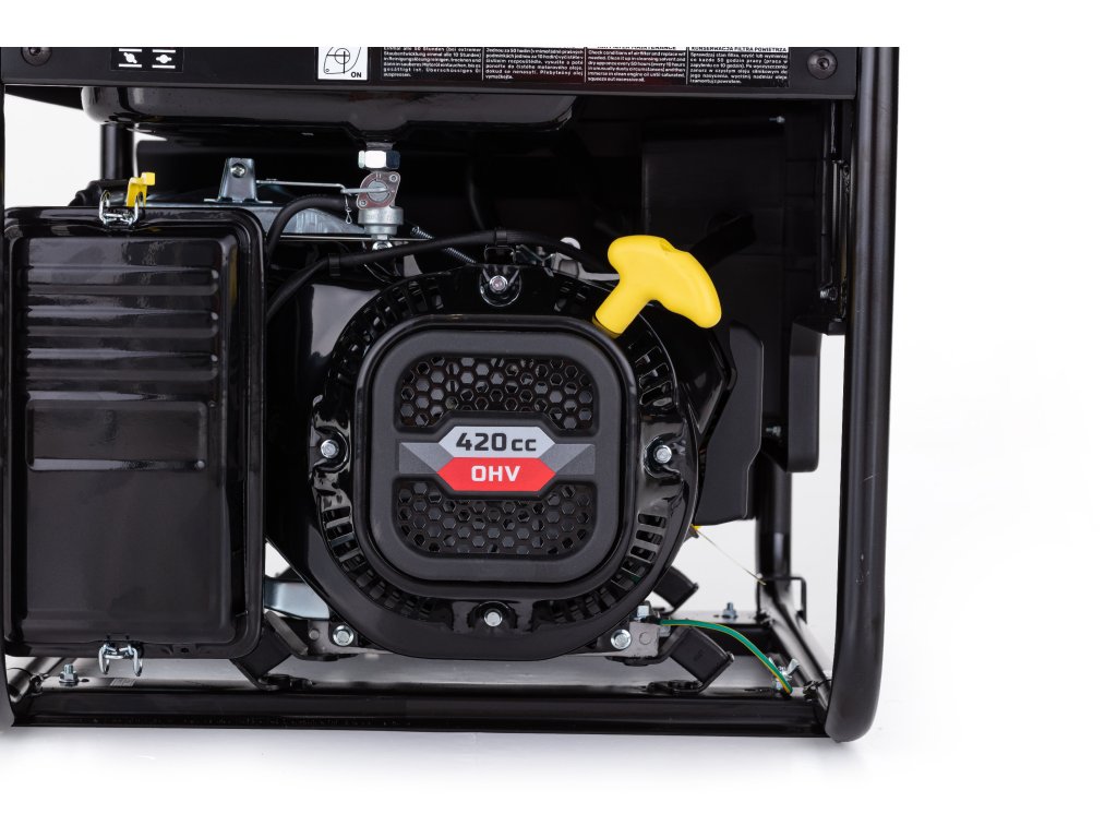 Der luftgekühlte Viertakter hat einen großen 25l-Tank, der das lange und störungsfreie Betreiben von bis zu 7,7 h erlaubt. Der Generator wird händisch gestartet und liefert 230V. Die so entstehende Leistung von 6,5 kVA / 6,5 kW (Höchstleistung) und 6 kVA / 6 kW (Nennleistung) macht den Generator zu einem leistungsstarken Begleiter.