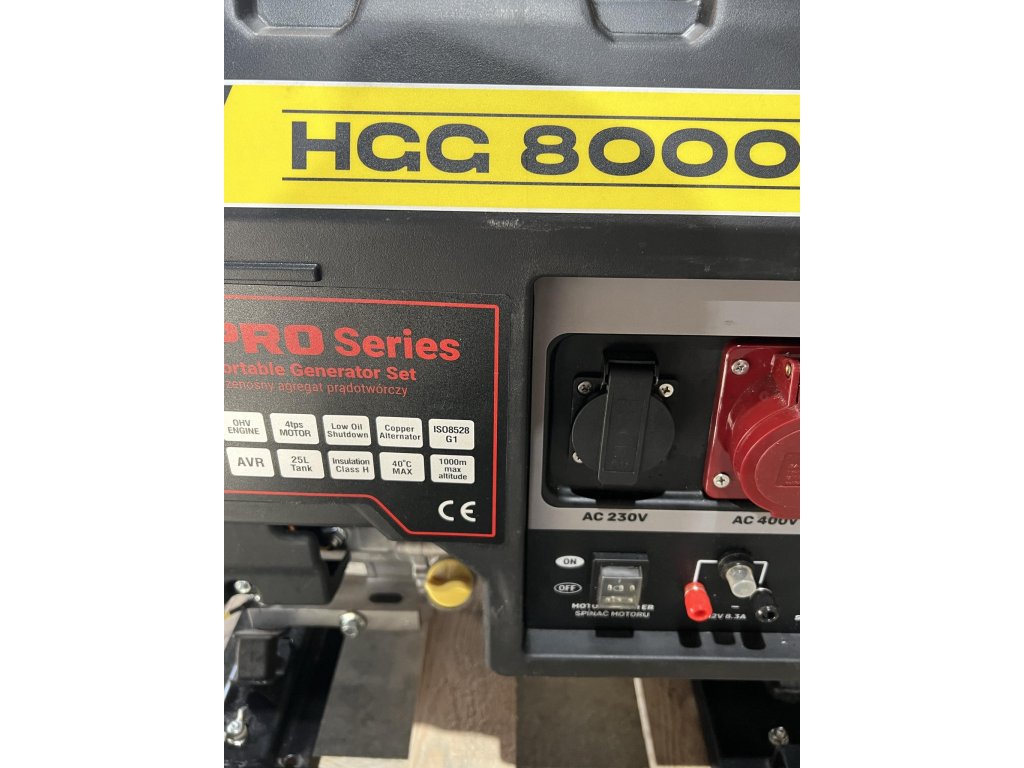 Der luftgekühlte Viertakter hat einen großen 25l-Tank, der das lange und störungsfreie Betreiben von bis zu 7,7 h erlaubt. Der Generator wird händisch gestartet und ist dreiphasig. Die so entstehende Leistung von 6,5 kW (Höchstleistung) und 6 kW (Nennleistung) macht den Generator zu einem leistungsstarken Begleiter.