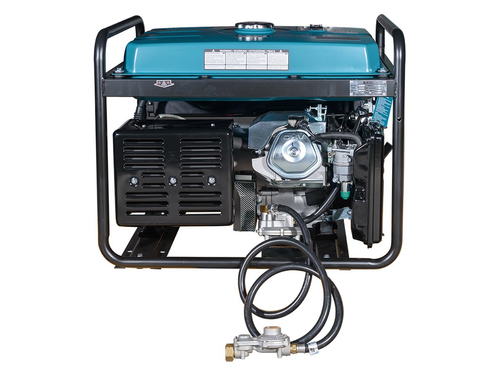 Der Betrieb mit Gas erhöht die Lebensdauer des Motors. Im Lieferumfang sind alle notwendigen Anschlüsse für die Gasflasche enthalten: Der Generator ist mit einem Flüssiggasschlauch und zwei Druckreglern ausgestattet; er muss lediglich an die Flasche angeschlossen werden. Der Generator kann nicht an eine Gasleitung angeschlossen werden. Bei Bedarf lassen sich die LPG/Benzin-Modelle einfach in den Benzinbetrieb umschalten. Der leistungsstarke luftgekühlte Einzylinder-Viertaktmotor von K&S sorgt für einen stabilen und zuverlässigen Betrieb.