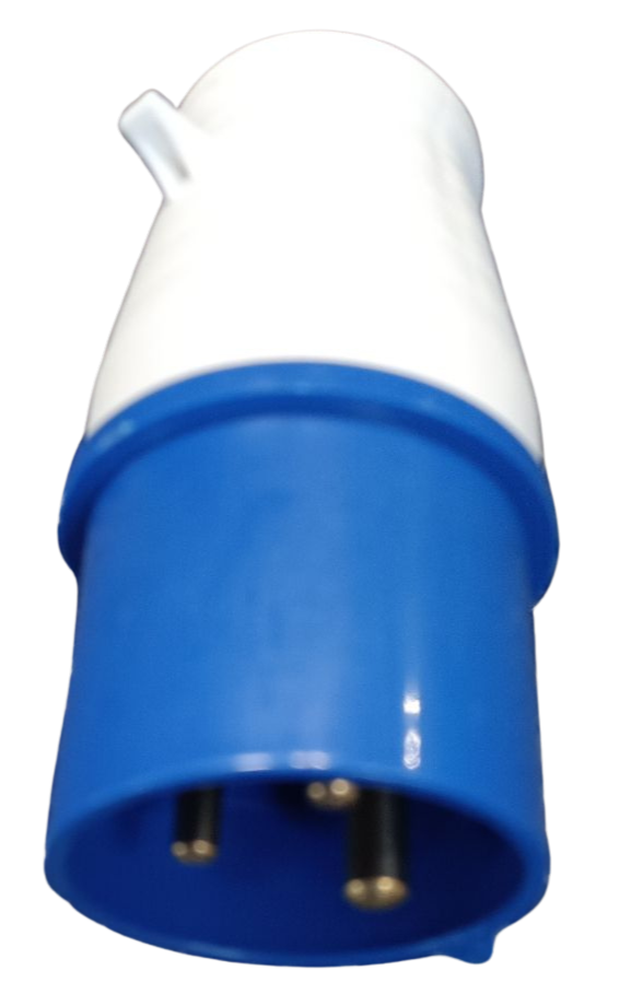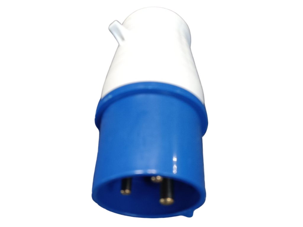 Robuster einphasiger Stecker 230 V / 16 A, geeignet zum Anschluss von Stromerzeugern, Verlängerungskabeln und elektrischen Verbrauchern im privaten sowie professionellen Einsatz.