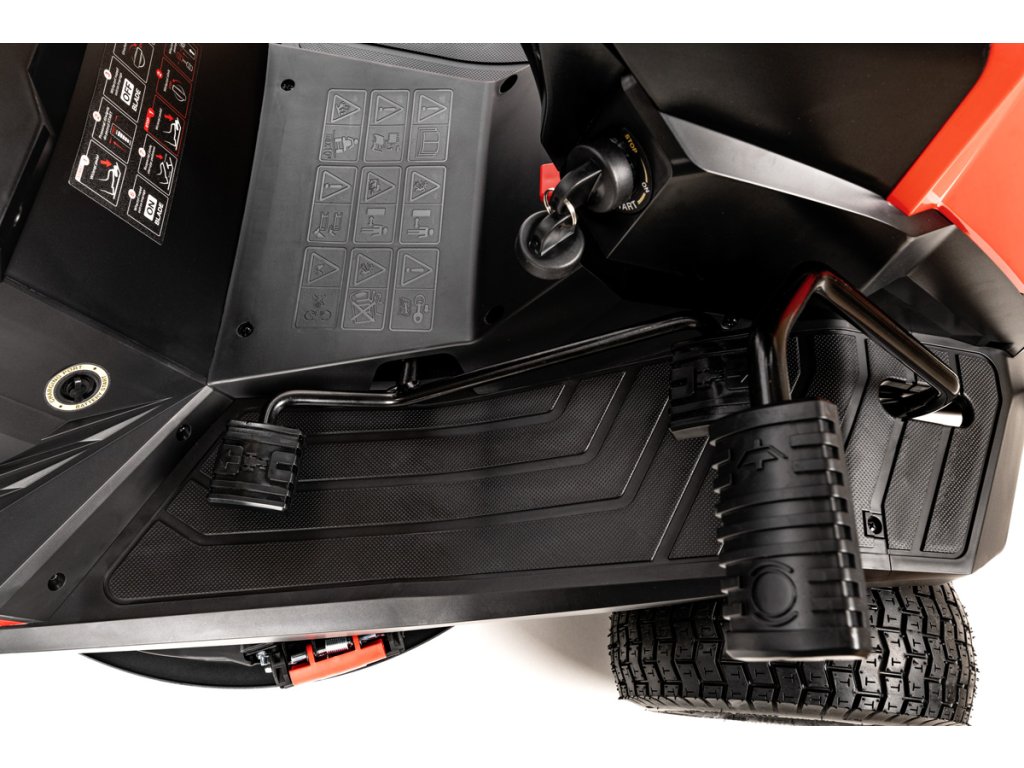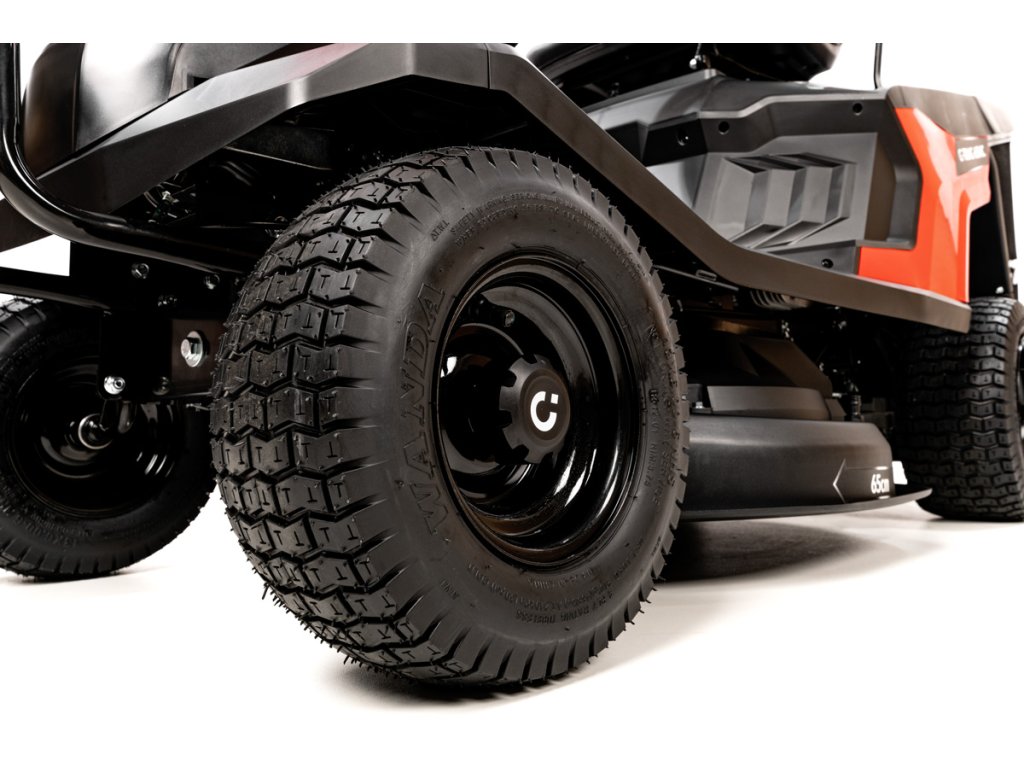 - Hydrostatisches Getriebe ermöglicht eine stufenlose Geschwindigkeitsregelung vorwärts und rückwärts per Pedal, ohne Schalten. Die Maschine ist mit einem ergonomischen Sitz, einer zentralen Schnitthöhenverstellung (30–75 mm) und einer Schnittbreite von 65 cm ausgestattet, wodurch sie ideal für die Pflege mittelgroßer Rasenflächen geeignet ist.
