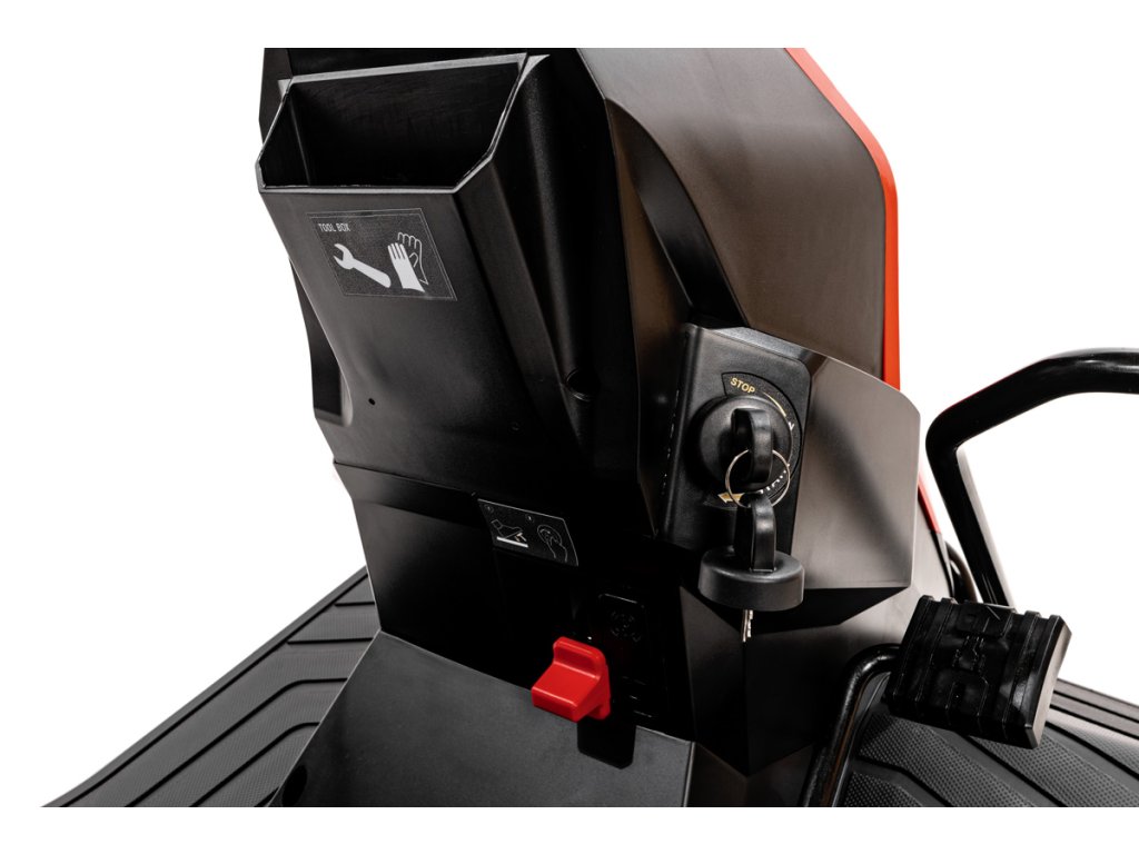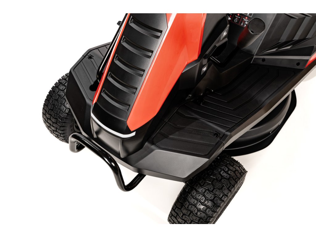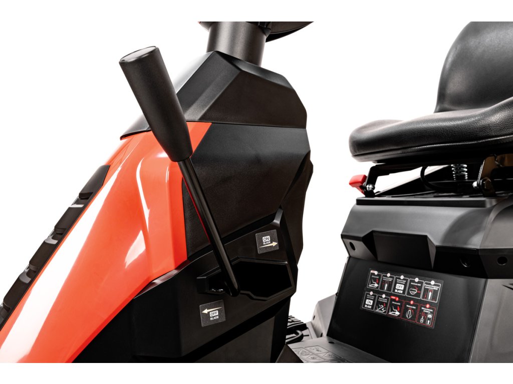 - Zur Ausstattung gehören ein 150-Liter-Fangkorb, ein Mulchkit, Ladegerät und Akku. Der Rasentraktor verfügt außerdem über einen Sicherheitsschalter gegen unbeabsichtigtes Starten (z. B. durch Kinder), eine Rückwärtsmähfunktion, eine Anhängevorrichtung, einen Getränkehalter und eine komfortable Schnitthöhenverstellung vom Fahrersitz aus.
