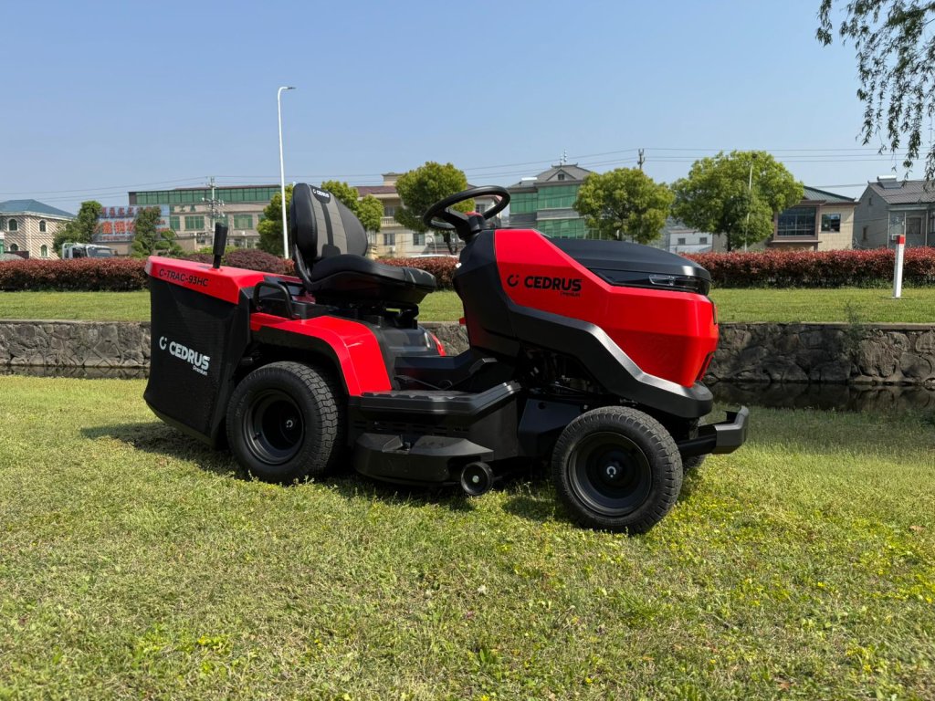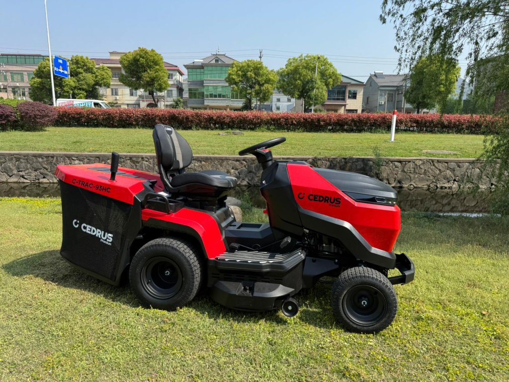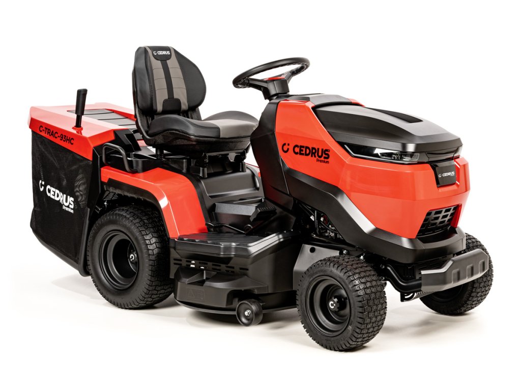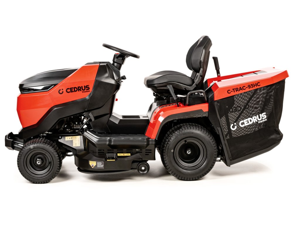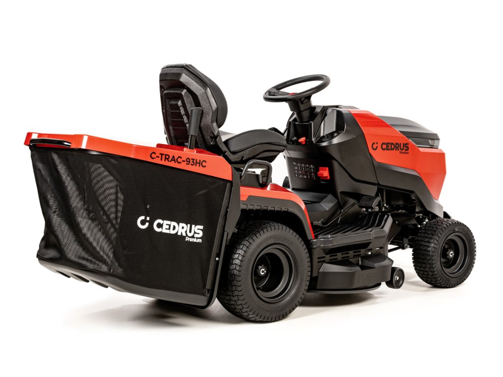 Leistungsstarker Rasentraktor Cedrus C-TRAC-93HC mit Zweizylindermotor und einer Schnittbreite von 93 cm ist die ideale Wahl für die regelmäßige Pflege größerer Rasenflächen. Hydrostatisches Getriebe, elektromagnetische Messerkupplung und ein Fangkorb mit 280 l Volumen sorgen für komfortables Arbeiten und eine effiziente Grasaufnahme.