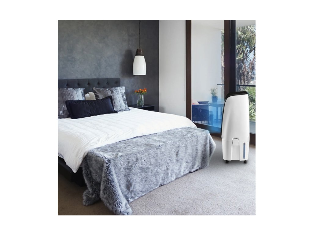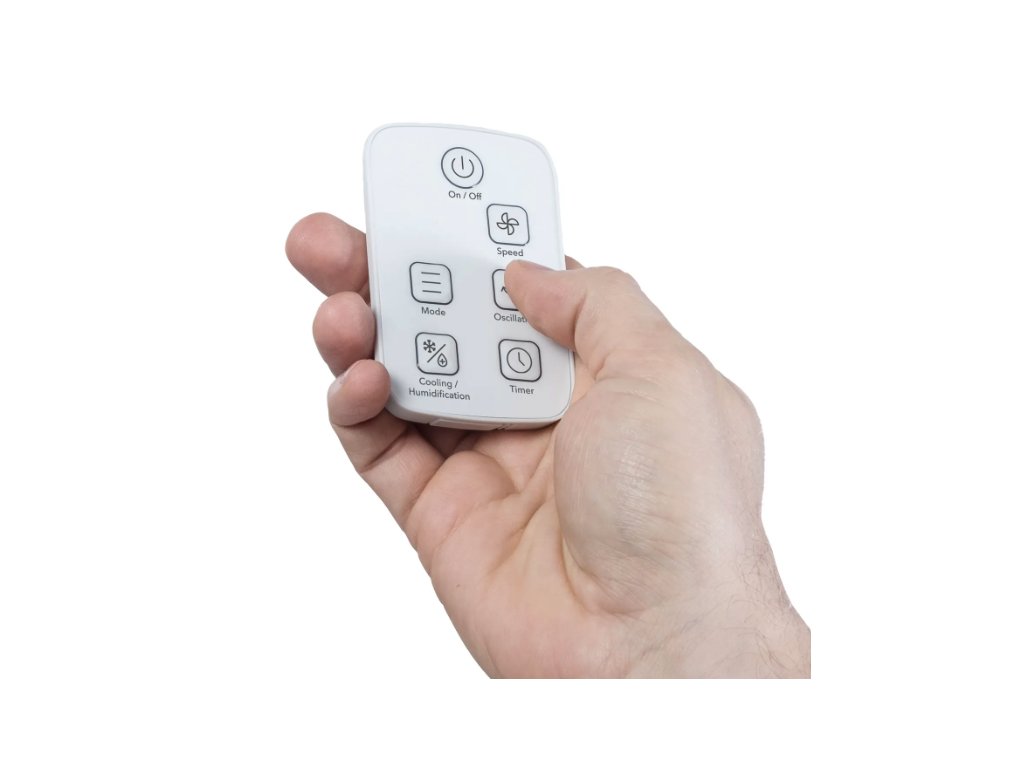 Einen erholsamen Schlaf gewährleisten der flüsterleise Nacht-Modus sowie die Timerfunktion, mit der sich der Luftkühler nach einer frei wählbaren Zeit automatisch ausschaltet. Alle Einstellungen erfolgen wahlweise über das LED-beleuchtete Bedienfeld am Gerät oder über die mitgelieferte Infrarot-Fernbedienung.