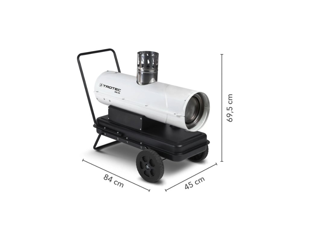 Das kleinste Ölheizgebläse der IDE-Serie von Trotec trumpft groß auf, wenn Sie auf der Suche nach einer kompakten und ebenso preisgünstigen wie zuverlässigen Öl-Beheizungslösung für flexible Beheizungseinsätze sind. Ob Werkstatt, Lager, Produktion oder Baustelle – mit 20 kW Heizleistung erzeugt das IDE 20 souverän saubere und trockene Heißluftmengen von bis zu 600 m³/h.