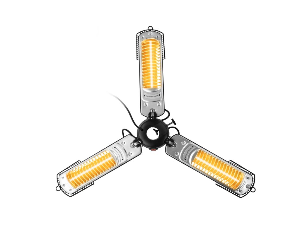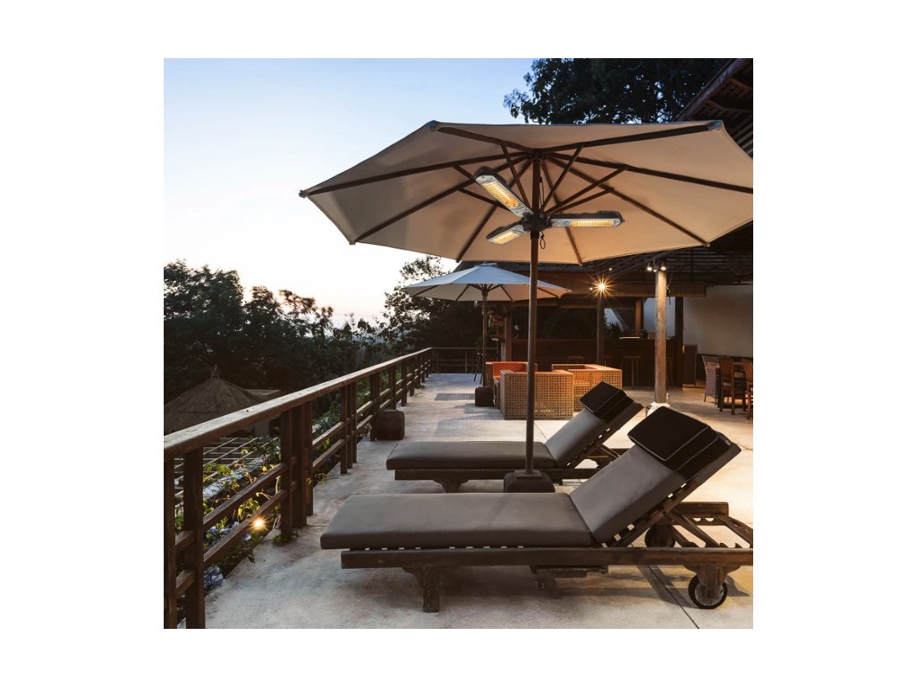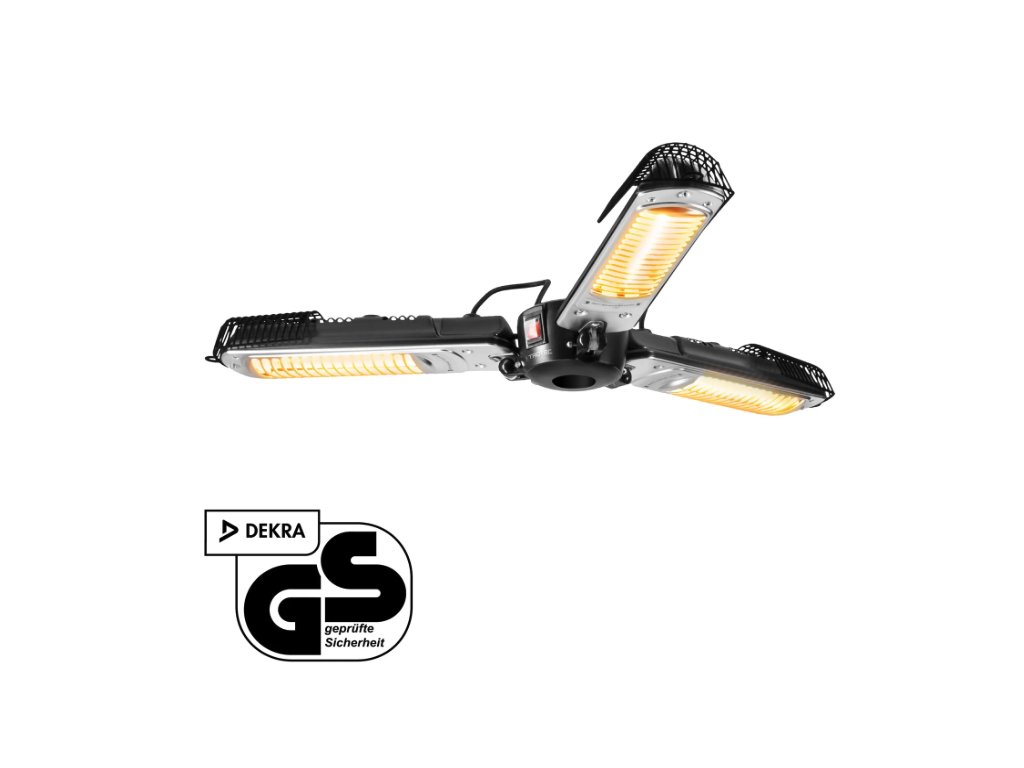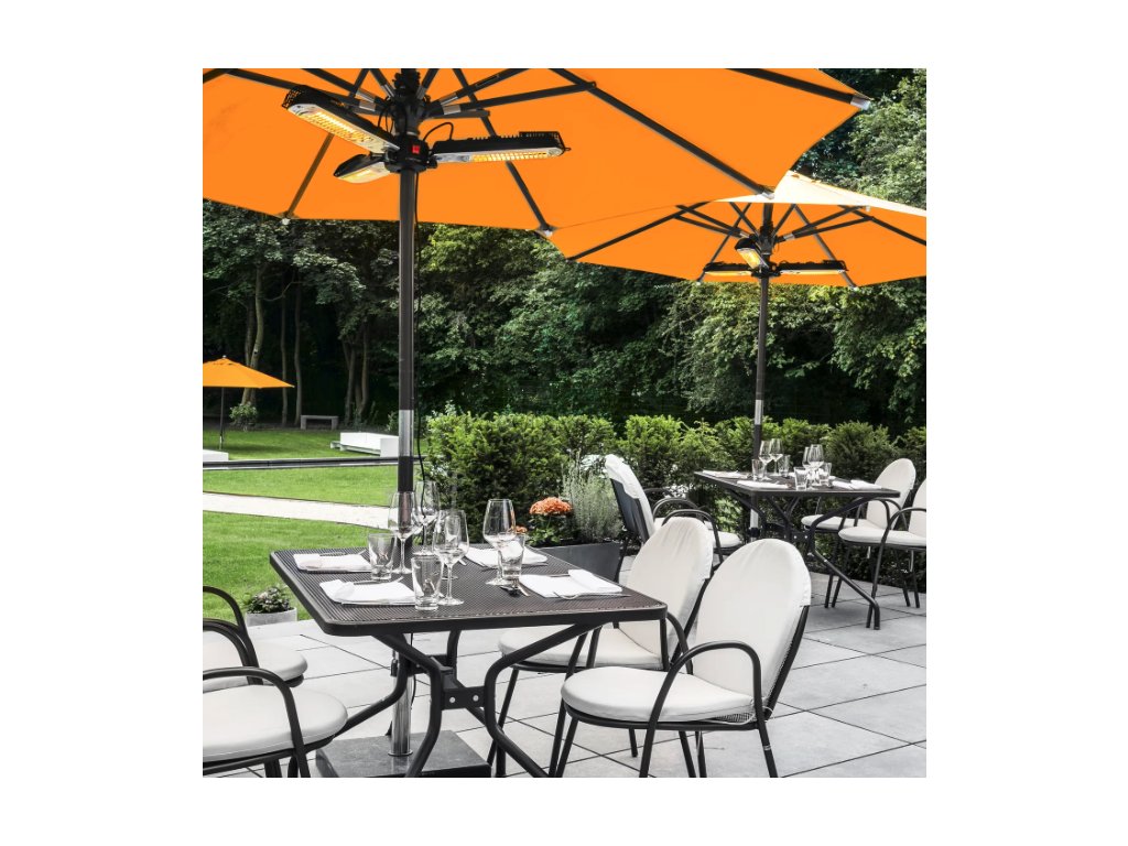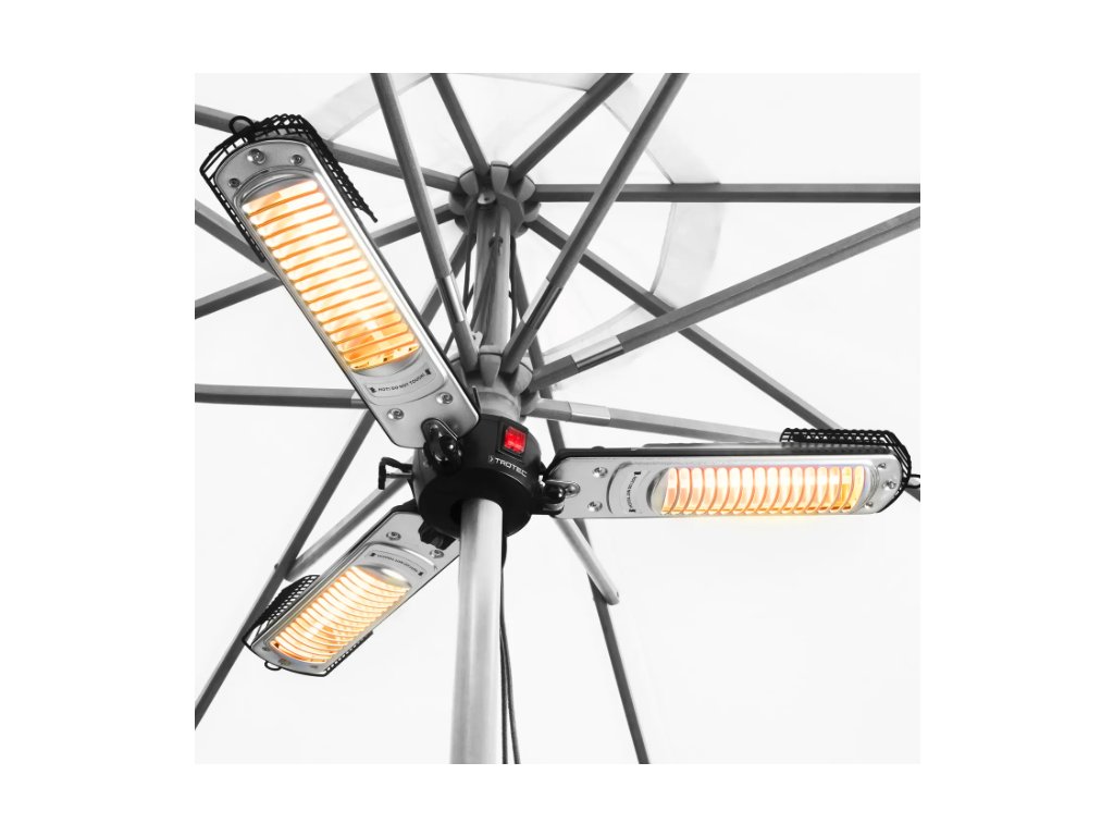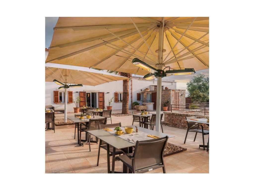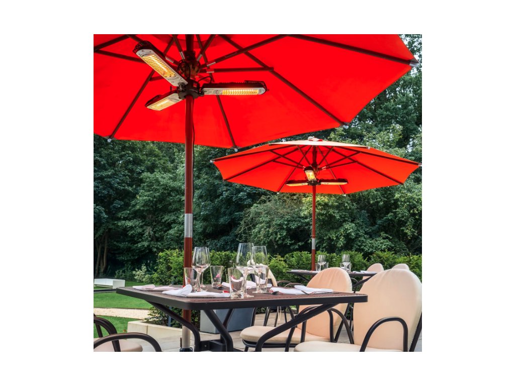 Vertrauen Sie dem Infrarot-Heizstrahler IR 2005 SC die Schirmherrschaft über Ihre Außenbereiche an und genießen Sie an kühlen Tagen sommerlich warme Temperaturen auf dem Balkon, der Terrasse oder in der gewerblichen Außengastronomie. Der pfiffig konstruierte 3-Flügel-Heizstrahler wurde speziell für die unkomplizierte Befestigung unter nahezu jedem Sonnen- bzw. Gastroschirm entwickelt, um Sitzgruppen im Garten, Tische in der Außengastronomie oder Stehtische auf Outdoor-Events und -Messen mit angenehmer Rundumwärme zu versorgen – ohne dabei zusätzlich Platz in Anspruch zu nehmen.