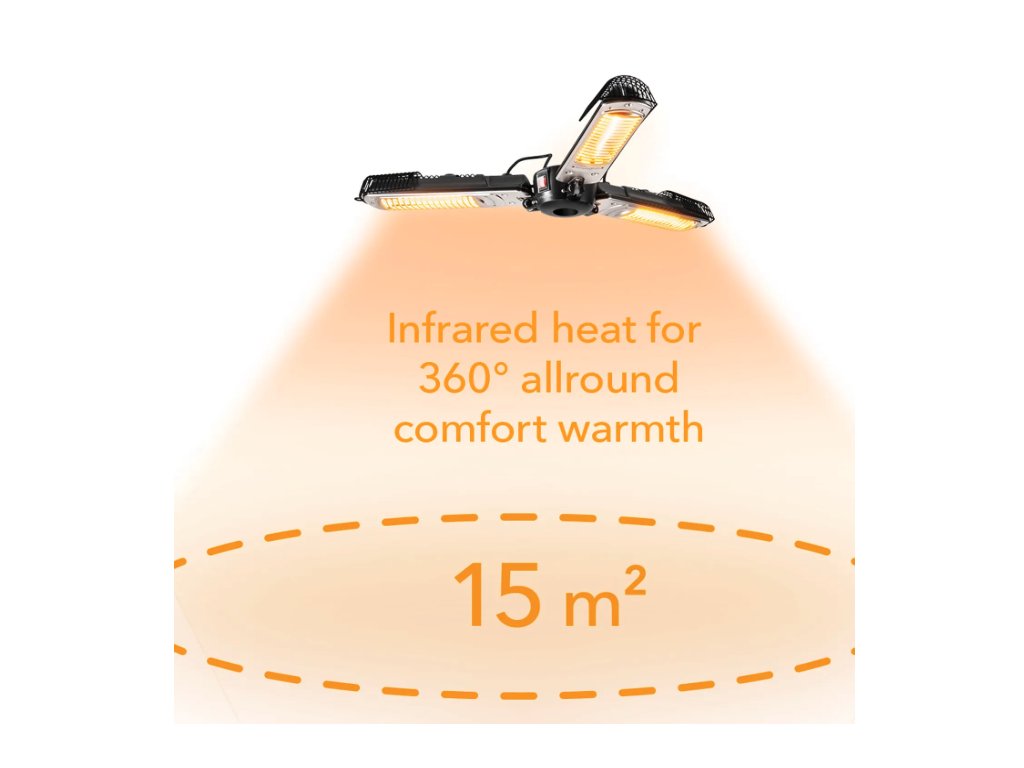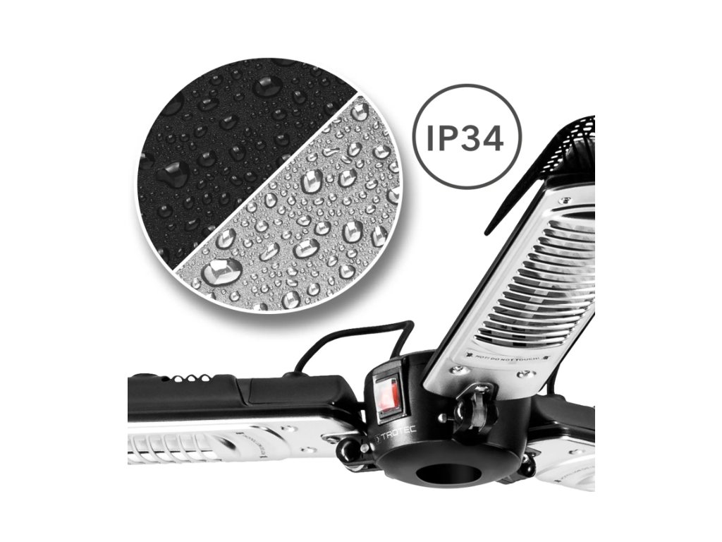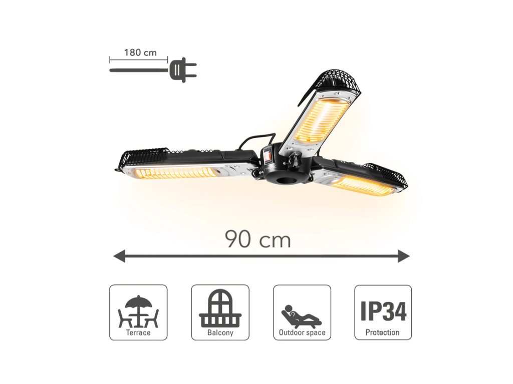 - Hochwertige Halogen-Infrarotheizröhren – ca. 5.000 Leuchtstunden ohne Blendeffekt
