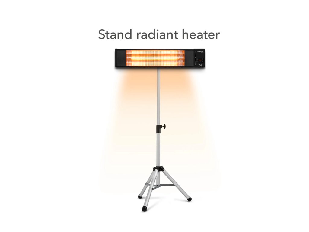 Ebenso flexibel wie bei den Anwendungsmöglichkeiten zeigt sich der Infrarotstrahler bei der Art seiner Befestigung. Als Wandheizstrahler versorgt der IR 2010 S Sitzgruppen und Stehtische mit zielgerichteter Wärme. Für die unkomplizierte Montage ist eine um 45° schwenkbare Halterung mitsamt Schrauben und Dübeln im Lieferumfang enthalten. Ebenso kann der mit einem 1,80 m langen Netzkabel ausgestattete Heizstrahler an Stativen befestigt werden, um den Einsatzradius zusätzlich zu erweitern.