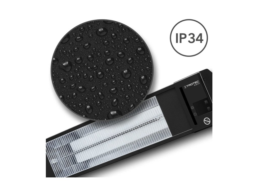 Für die energiesparende Programmierung einer vordefinierten Betriebsdauer verfügt der IR 2010 S über einen praktischen 24-Stunden-Timer. Einmal eingestellt, schaltet sich der Heizstrahler nach einer vorgegebenen Stundenzahl (1-24 Stunden) vollautomatisch ab. Das reduziert unnötige Betriebskosten und vereinfacht insbesondere die Nutzung im gewerblichen Einsatz. Ein weiterer Pluspunkt bei der professionellen Nutzung ist das nach Schutzart IP34 konstruierte Design-Aluminiumgehäuse, womit die Gerätetechnik des robusten Infrarotstrahler zuverlässig vor Spritzwasser geschützt wird.