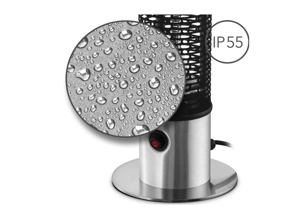 Weder feuchte Witterung, plötzlich eintretender Regen oder Staub können dem robusten Standheizstrahler IRS 1200 E etwas anhaben. Das hochwertige Aluminium-Gehäuse ist nach Schutzklasse IP55 gegen Staubablagerungen, Spritz- und Strahlwasser geschützt, womit sich der IRS 1200 E nicht nur auf der heimischen Terrasse gut macht, sondern sich auch für den Einsatz in unüberdachten Außenflächen von Restaurants, Lounges, Hotels, Wellness-Spas oder Urlaubs-Resorts empfiehlt.