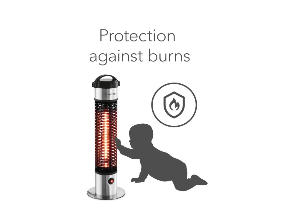 - Schutz vor Verbrennungen dank hochwertiger Velours-Beschichtung des Schutzgitters der Infrarot-Heizröhre