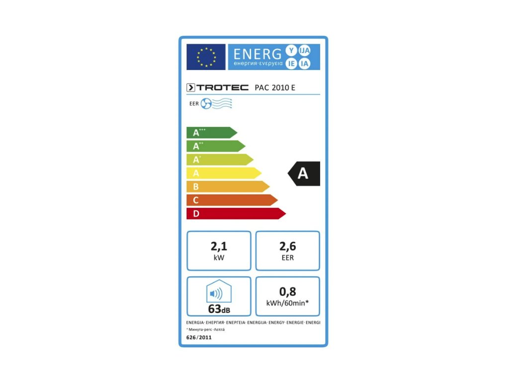 Tipp: Zur Klimatisierung von Räumen bis zu 85 m³ empfiehlt sich der große Bruder des PAC 2010 E. Das baugleiche Klimagerät PAC 2610 E erfüllt alle Anforderungen der Energieeffizienzklasse A und punktet mit seinem äußerst sparsamen Verbrauch bei einer gleichzeitig hohen Kühlleistung von 2,6 kW.