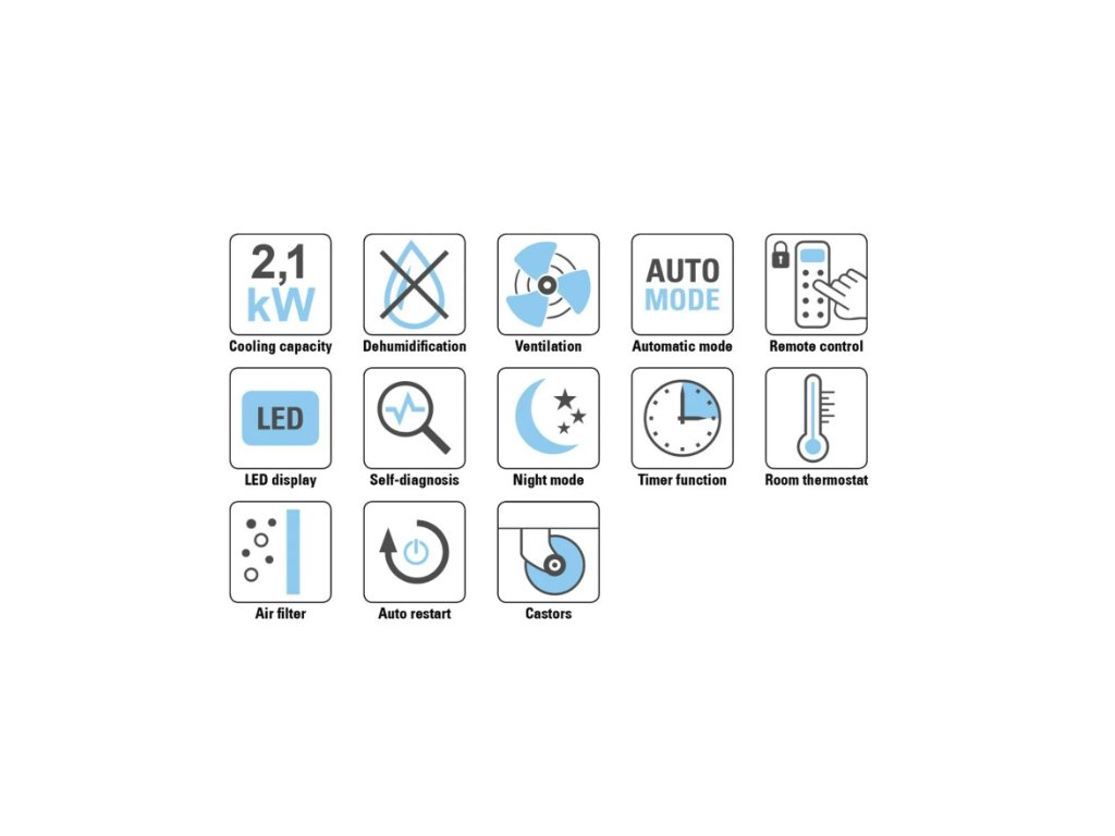 - Drei Betriebsmodi: Kühlung, Ventilation, Entfeuchtung