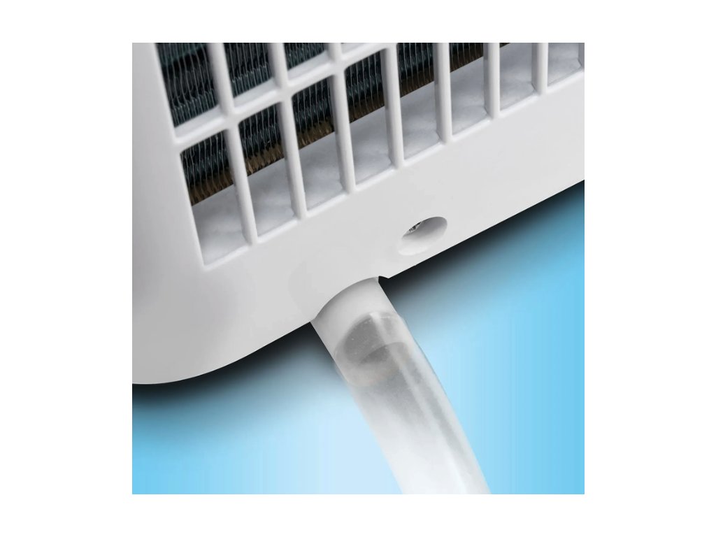 Im Sommer ist nicht nur die Hitze sondern oftmals auch eine zu hohe Luftfeuchtigkeit für den Körper sehr belastend. Mit einer Entfeuchtungsleistung von 0,8 Liter pro Stunde wird drückender und schwüler Luft aktiv Feuchtigkeit entzogen und ein spürbar angenehmeres Wohlfühlklima entsteht im Raum. Zusätzlich beugt die integrierte Luftentfeuchtungsfunktion auch ungesunder Schimmelbildung vor, daher empfiehlt sich der Einsatz als Luftentfeuchter das ganze Jahr über, nicht nur im Sommer. Aufgrund der internen Kondenswasserverwertung muss der Auffangbehälter nur sehr selten geleert werden, da das kondensierte Wasser über ein intelligentes Recyclingsystem zur Kühlung des Kondensators verwendet wird und somit ein Großteil davon einfach verdampft.
