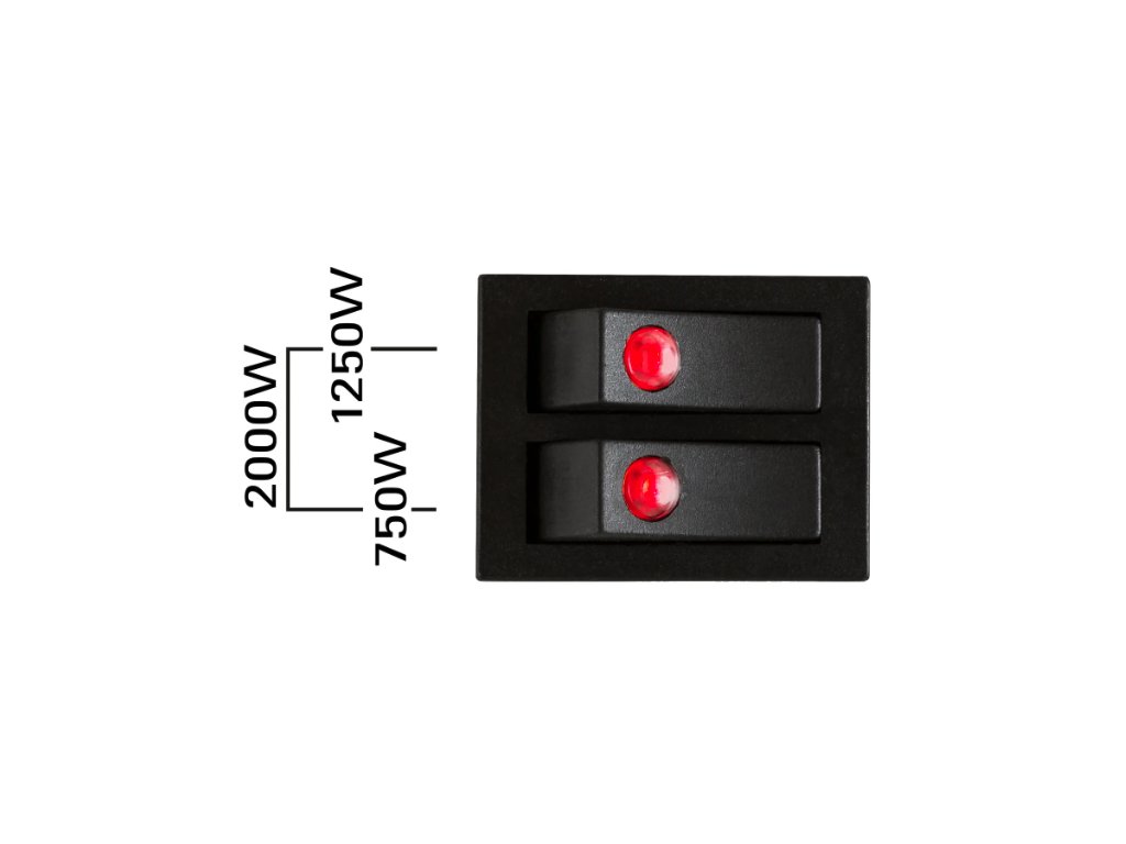 - Zwei Schalter mit drei verschiedenen Heizstufen