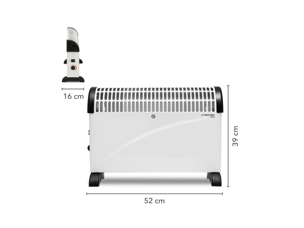 Über drei Heizstufen (750 W, 1.250 W und 2.000 W) kann der Raum bequem, geräuscharm und geruchlos aufgewärmt werden. Der integrierte Überhitzungsschutz gewährleistet zudem einen stets sicheren Betrieb, da sich der Konvektor TCH 20 E ausschaltet, sobald er überhitzt.