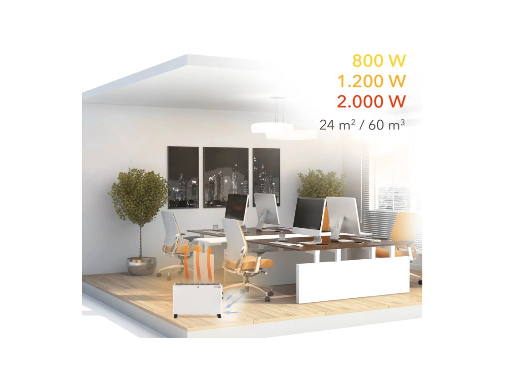 - Bis 2.000 W Heizleistung für saubere, kondensfreie und geruchlose Wärme