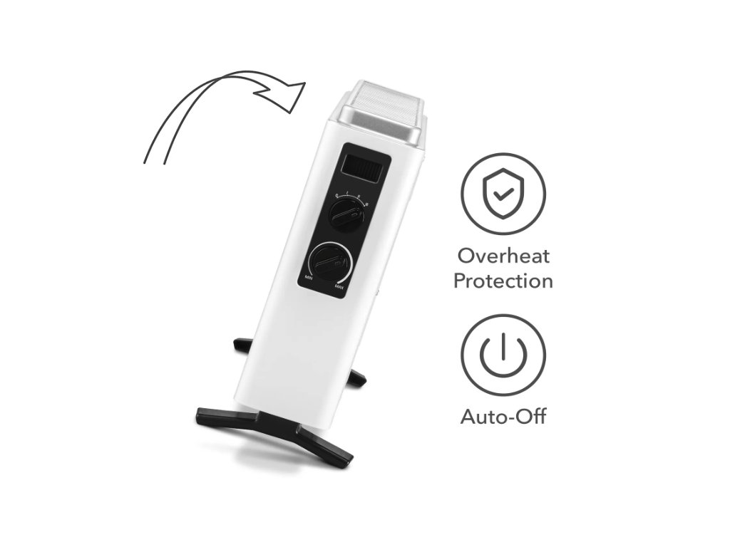 Ein Garant für niedrige Verbrauchskosten ist die integrierte Thermostatsteuerung, mit der die Raumtemperatur vollautomatisch auf den individuellen Wohlfühlwert reguliert wird. Zuerst wir das gewünschte Temperaturniveau bequem und stufenlos über ein seitlich angebrachtes Drehthermostat voreingestellt. Danach kontrollieren Intelligente Temperatursensoren fortlaufend die Raumtemperatur und regeln die Heizleistung der gewünschten Temperatur entsprechend. Wird die Zieltemperatur erreicht, schalten sich das strombetriebene Heizelement so lange ab, bis ein Nachheizen des Raumes erforderlich wird. Das spart Stromkosten und macht den Einsatz des Heizgerätes erfreulich wirtschaftlich – trotz steigender Energiekosten.