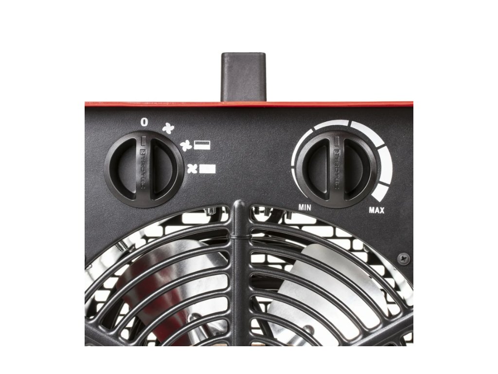 Mittels der integrierten Thermostatsteuerung des TDS 50 E lässt sich der erzeugte Warmluftstrom stufenlos im Handumdrehen auf die gewünschte Temperatur einstellen und für eine raumfüllende Temperierung über die zweistufige Leistungssteuerung bedarfsgerecht regulieren. Darüber hinaus ist außerdem ein Ventilatorbetrieb ohne Heizfunktion möglich.