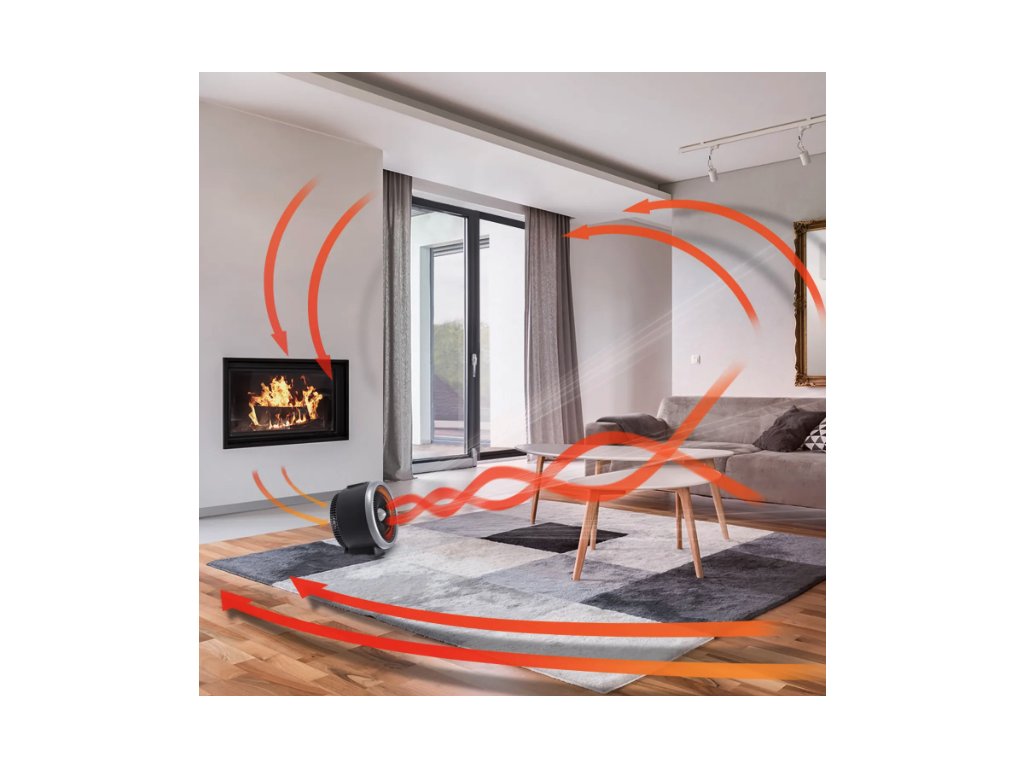 - Optimale Wärmezirkulation durch Turbospin-Technologie – dadurch weiträumige Verteilung der warmen Luft