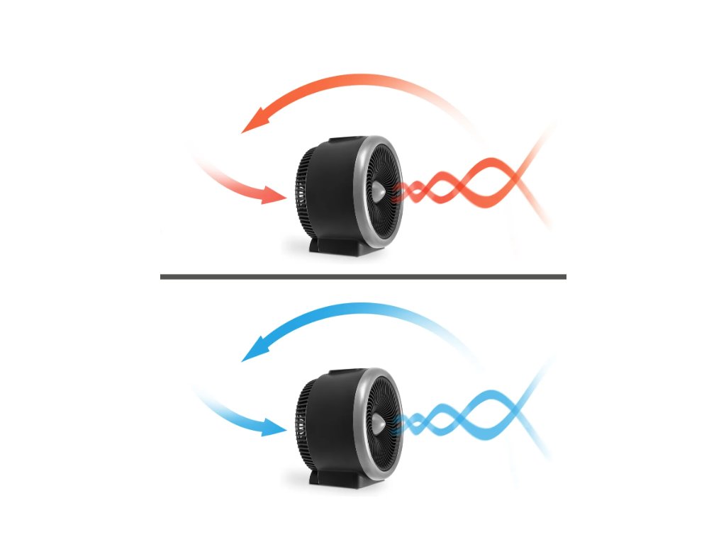 Leiser als man erwartet: Die kraftvolle Turbospin-Technik ist im Betrieb überraschend geräuscharm. Das angenehm sanfte, sonore Grundgeräusch des austretenden Luftstroms lässt sich leicht überhören. So können Sie auch im Schlafzimmer oder z. B. beim Fernsehen wahlweise Wärme oder Abkühlung genießen, ohne von zu lauten Nebengeräuschen abgelenkt zu werden.